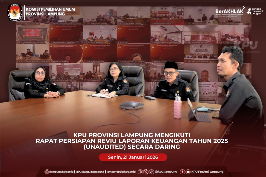 #TemanPemilih, KPU Provinsi Lampung mengikuti Rapat Persiapan Reviu atas Laporan Keuangan Tahun 2025 (Unaudited) yang diselenggarakan secara daring di Ruang Rapat Ketua KPU Provinsi Lampung, Rabu (21/1/2026). Kegiatan ini diikuti oleh Sekretaris KPU Provinsi Lampung Arif Ma’ruf, Kepala Bagian Keuangan, Umum, dan Logistik (KUL), Pejabat Pembuat Komitmen (PPK), Kasubbag Keuangan, Bendahara, Operator GLP, serta Operator Aset dan Persediaan. Rapat persiapan reviu ini merupakan forum koordinasi nasional yang diselenggarakan oleh Inspektorat Utama KPU secara hybrid dari Jakarta. Kegiatan ini bertujuan untuk menyelaraskan pemahaman antara reviewer dan auditi terkait mekanisme reviu laporan keuangan, mengidentifikasi kesiapan data dan dokumen pendukung, serta memetakan potensi permasalahan agar dapat ditindaklanjuti sebelum finalisasi laporan keuangan. Dengan demikian, permasalahan di tingkat kabupaten/kota diharapkan dapat diselesaikan sebelum penyampaian laporan keuangan ke tingkat pusat. Rapat dibuka oleh Inspektur Wilayah Satu Inspektorat Utama KPU, Wahyu Yudi Wijayanti, yang menegaskan komitmen KPU dalam menyusun laporan keuangan tahun 2025 yang berkualitas, sesuai standar akuntansi pemerintahan, patuh terhadap peraturan perundang-undangan, serta didukung sistem pengendalian internal yang efektif. Ia juga menyampaikan harapan agar KPU dapat mempertahankan opini Wajar Tanpa Pengecualian (WTP) sebagaimana yang telah diraih pada tahun-tahun sebelumnya. Melalui keikutsertaan dalam rapat ini, KPU Provinsi Lampung berkomitmen mendukung proses reviu laporan keuangan secara kooperatif, profesional, dan tepat waktu, sebagai bagian dari upaya mewujudkan pengelolaan keuangan negara yang akuntabel, transparan, dan dapat dipertanggungjawabkan. #KPUMelayani #KPULampung ....