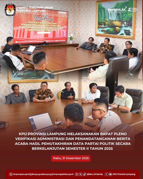 Dalam kesempatan tersebut, Febri Indra Kurniawan menyampaikan laporan sekaligus hasil pelaksanaan rapat koordinasi dan bimbingan teknis yang telah diselenggarakan oleh KPU Provinsi Lampung. Kegiatan tersebut melibatkan berbagai pemangku kepentingan, antara lain partai politik, Bawaslu, serta perwakilan Forum Koordinasi Pimpinan Daerah (Forkopimda) Provinsi Lampung.