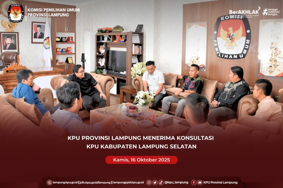 Komisi Pemilihan Umum (KPU) Provinsi Lampung menerima kunjungan konsultasi dari KPU Kabupaten Lampung Selatan di Kantor KPU Provinsi Lampung.