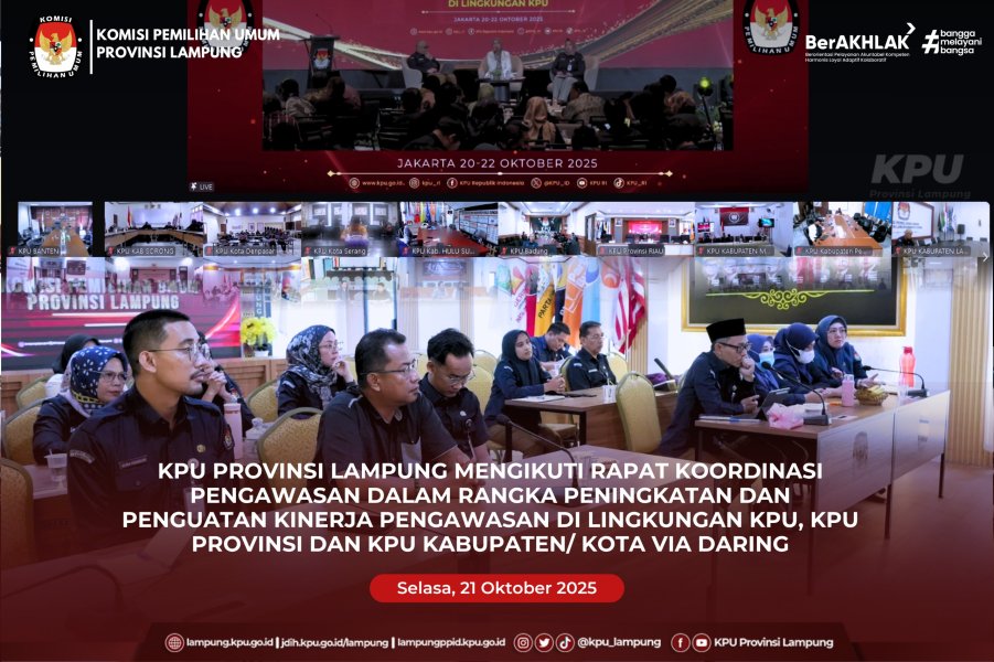 KPU Provinsi Lampung mengikuti Rapat Koordinasi Pengawasan Dalam Rangka Peningkatan Dan Penguatan Kinerja Pengawasan Di Lingkungan Komisi Pemilihan Umum KPU Provinsi/KIP Aceh dan KPU/KIP Aceh Kabupaten/Kota via daring
