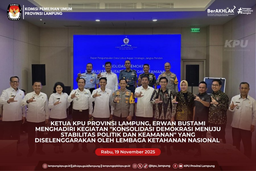 Ketua KPU Provinsi Lampung, Erwan Bustami menghadiri kegiatan "Konsolidasi Demokrasi Menuju Stabilitas Politik dan Keamanan" yang diselenggarakan oleh Lembaga Ketahanan Nasional di Hotel Novotel Bandar Lampung, Rabu (19/11/2025).