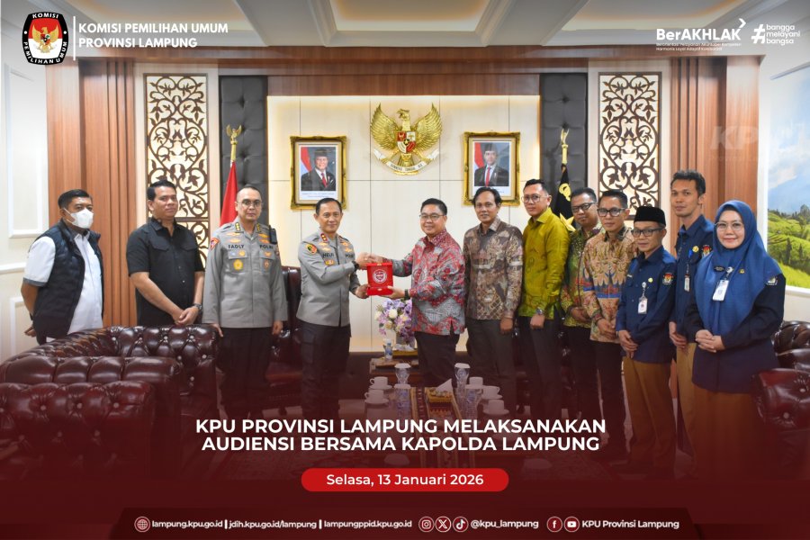 KPU Provinsi Lampung melaksanakan audiensi bersama Kapolda Lampung pada Selasa (13/1/2026) di ruang kerja Kapolda Lampung. Kegiatan ini menjadi bagian dari silaturahmi kelembagaan sekaligus penguatan koordinasi strategis antarinstansi.