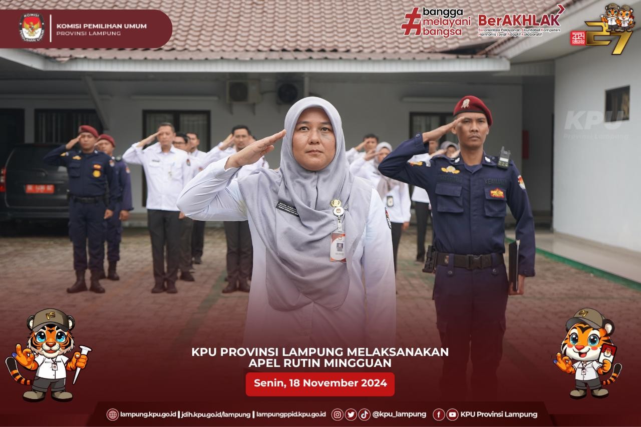 KPU Provinsi Lampung melaksanakan apel rutin mingguan di halaman Kantor KPU Provinsi Lampung.