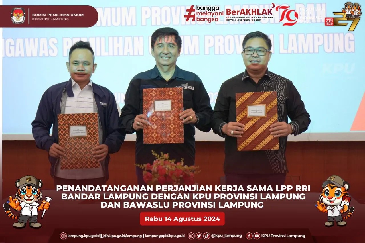 Perjanjian Kerja Sama ini ditandatangani oleh Kepala LPP RRI Bandar Lampung, Iwan Effendi Lathan, Ketua KPU Provinsi Lampung, Erwan Bustami, dan Ketua Bawaslu Provinsi Lampung, Iskardo P. Panggar, dalam acara yang berlangsung di Studio 2 RRI Bandar Lampung.