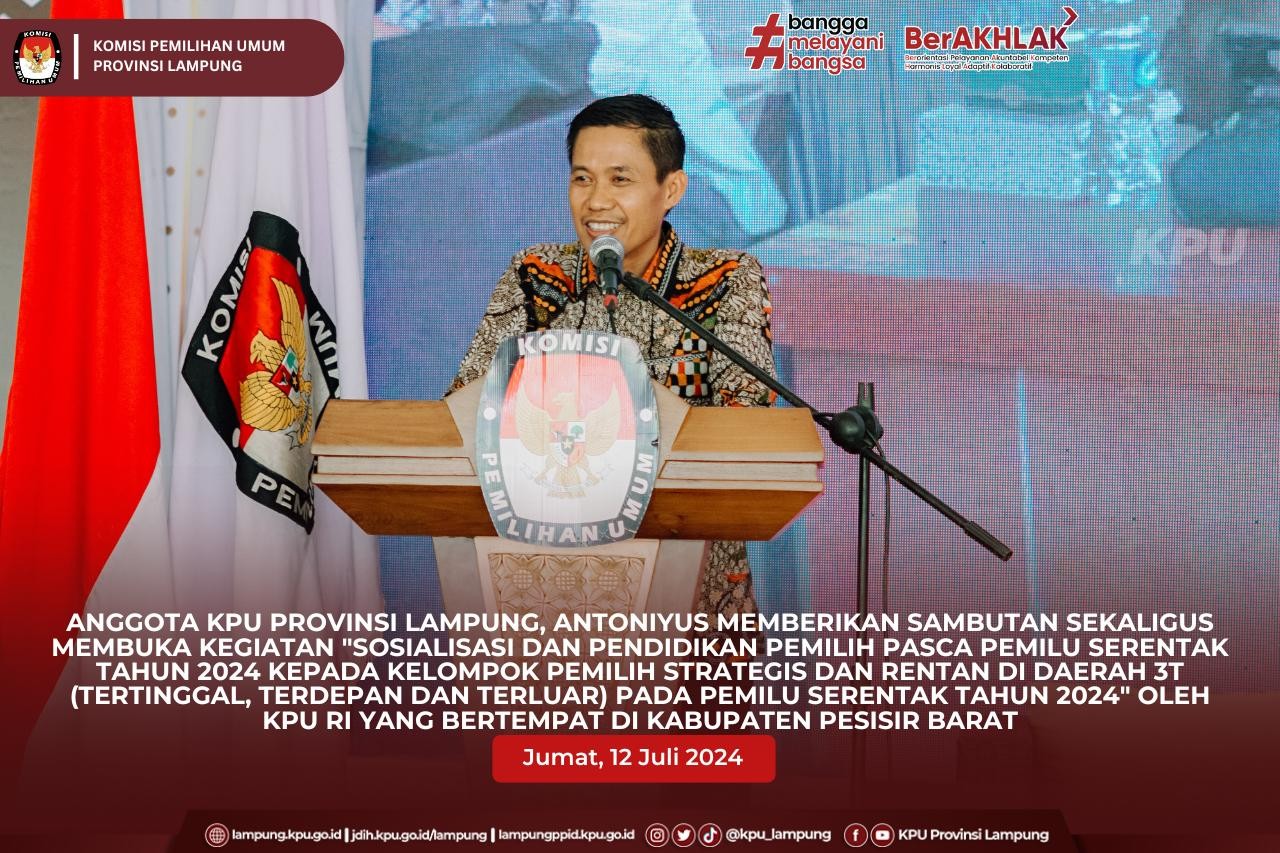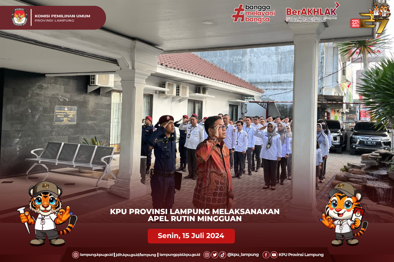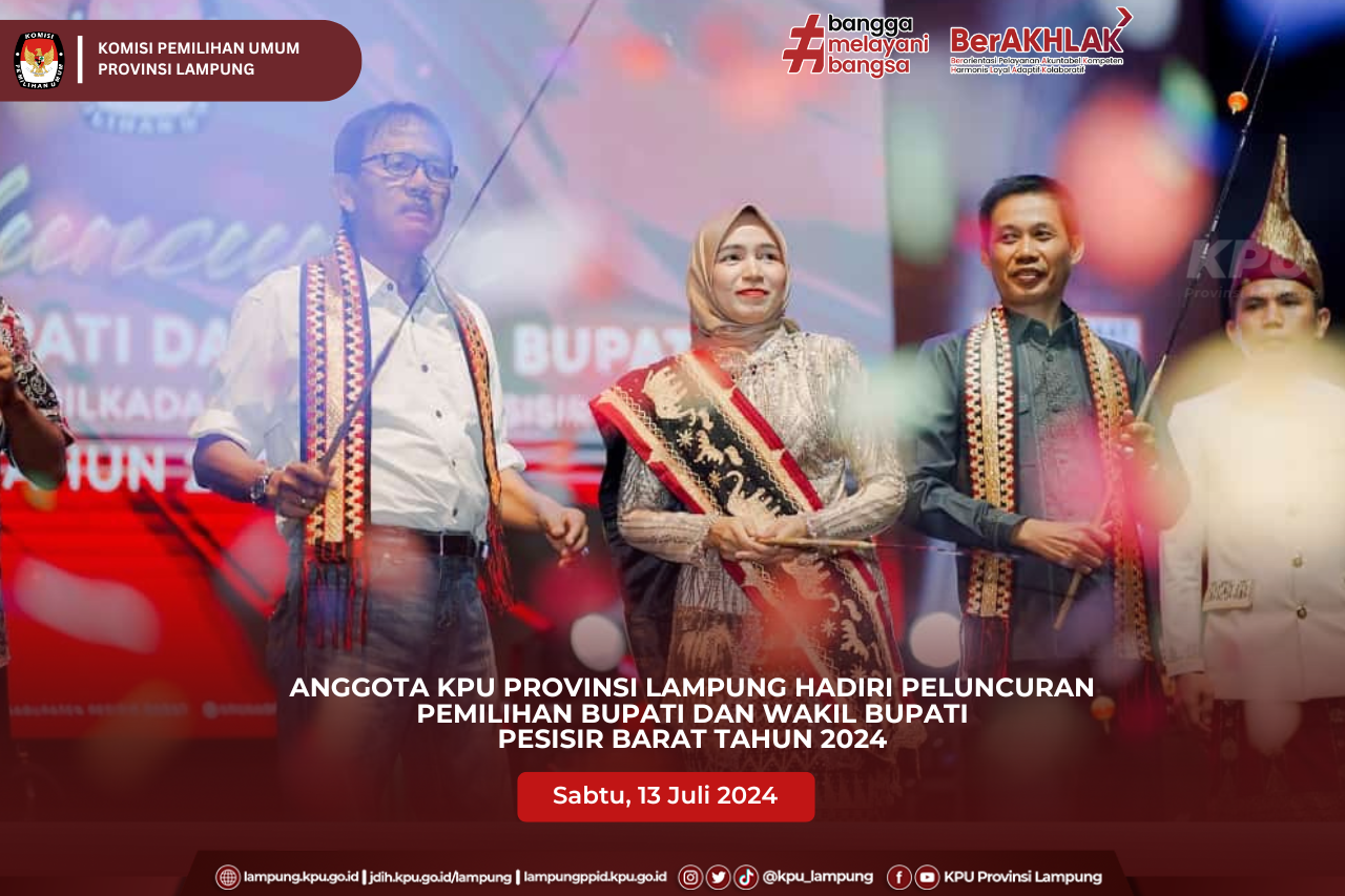 (Senin, 15 Juli 2024) Ketua KPU Provinsi Lampung Erwan Bustami, Anggota KPU Provinsi Lampung Antoniyus, Ali Sidik, Titik Sutriningsih, Warsito, Agus Riyanto beserta Plh. Sekretaris KPU Provinsi Lampung Yustian Umri Sangon, melaksanakan audiensi bersama PJ Gubernur Lampung bertempat di Kantor Gubernur. Kegiatan audiensi KPU Provinsi Lampung Bersama PJ Gubernur Lampung dalam rangka silaturahmi serta pemberitahuan persiapan pelaksanaan tahapan Pilkada serentak tahun 2024 yang sedang berjalan di Provinsi Lampung, pada kesempatan ini Ketua KPU Provinsi Lampung, Erwan Bustami menjelaskan dalam proses pelaksanaan Pemilihan Serentak saat ini, KPU Provinsi Lampung sedang dalam Proses pencocokan data Pemilih yang sedang dilaksanakan oleh Pantarlih. PJ Gubernur Lampung Dr. Drs. Samsudin S.H., M.H., M.Pd mengapresiasi pencapaian Komisi Pemilihan Umum Provinsi Lampung yang telah berhasil menyelenggarakan Pemilihan Umum Serentak Tahun 2024 di Provinsi Lampung, beliau juga berharap keberhasilan KPU Provinsi Lampung dalam melaksanakan Pemilu di Provinsi lampung dapat diulang Kembali pada Pemilihan Kepala Daerah Serentak Tahun 2024 yang akan diselenggarakan pada hari rabu, 27 November 2024.