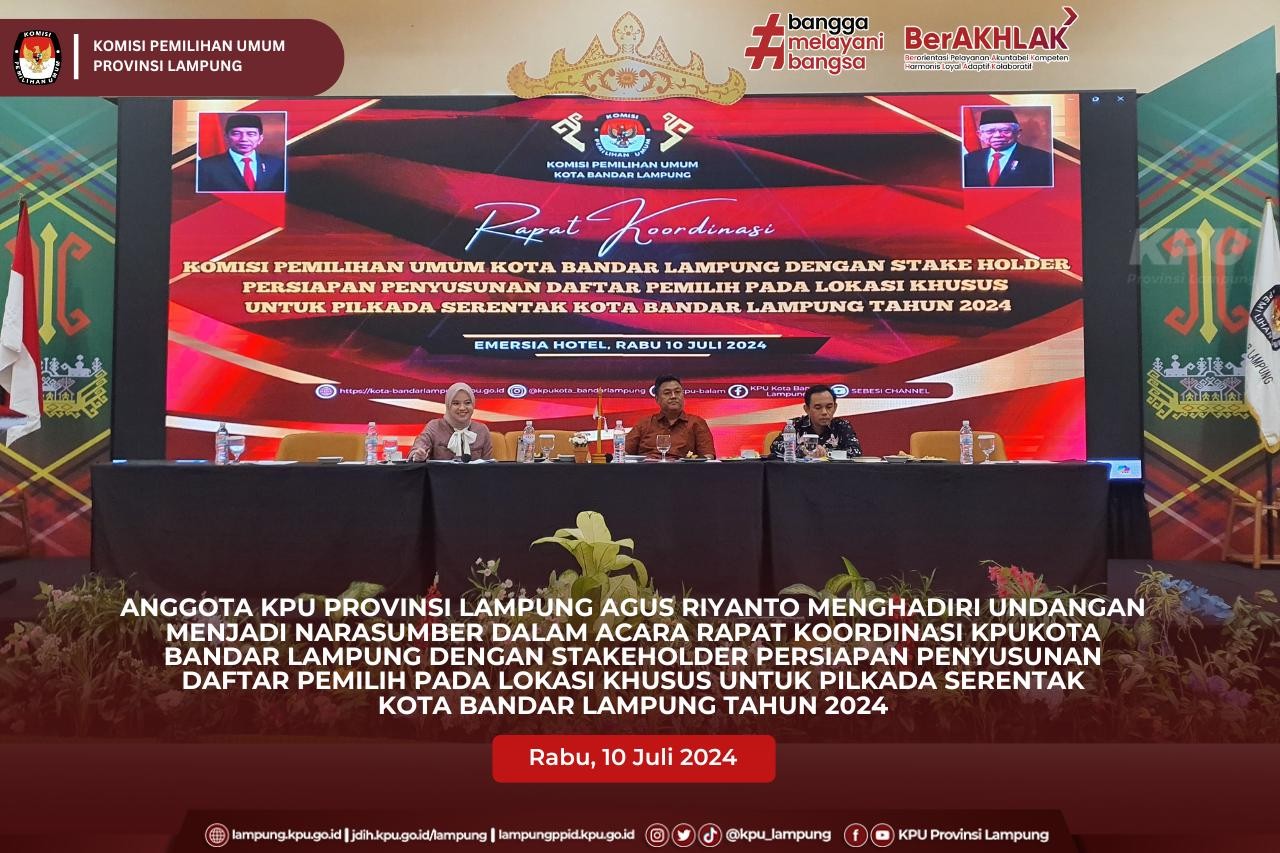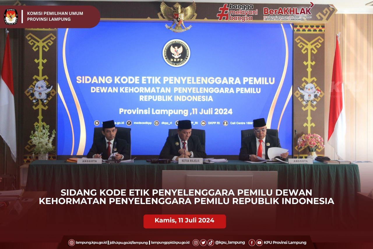 (Kamis, 11 Juli 2024) Anggota KPU Provinsi Lampung Agus Riyanto sebagai Tim Pemeriksa Daerah mengikuti sidang pemeriksaan dugaan pelanggaran Kode Etik Penyelenggara Pemilu (KEPP) perkara nomor 83-PKE-DKPP/V/2024 yang diselenggarakan oleh DKPP RI di Aula Kantor KPU Provinsi Lampung pukul 09.00 WIB.