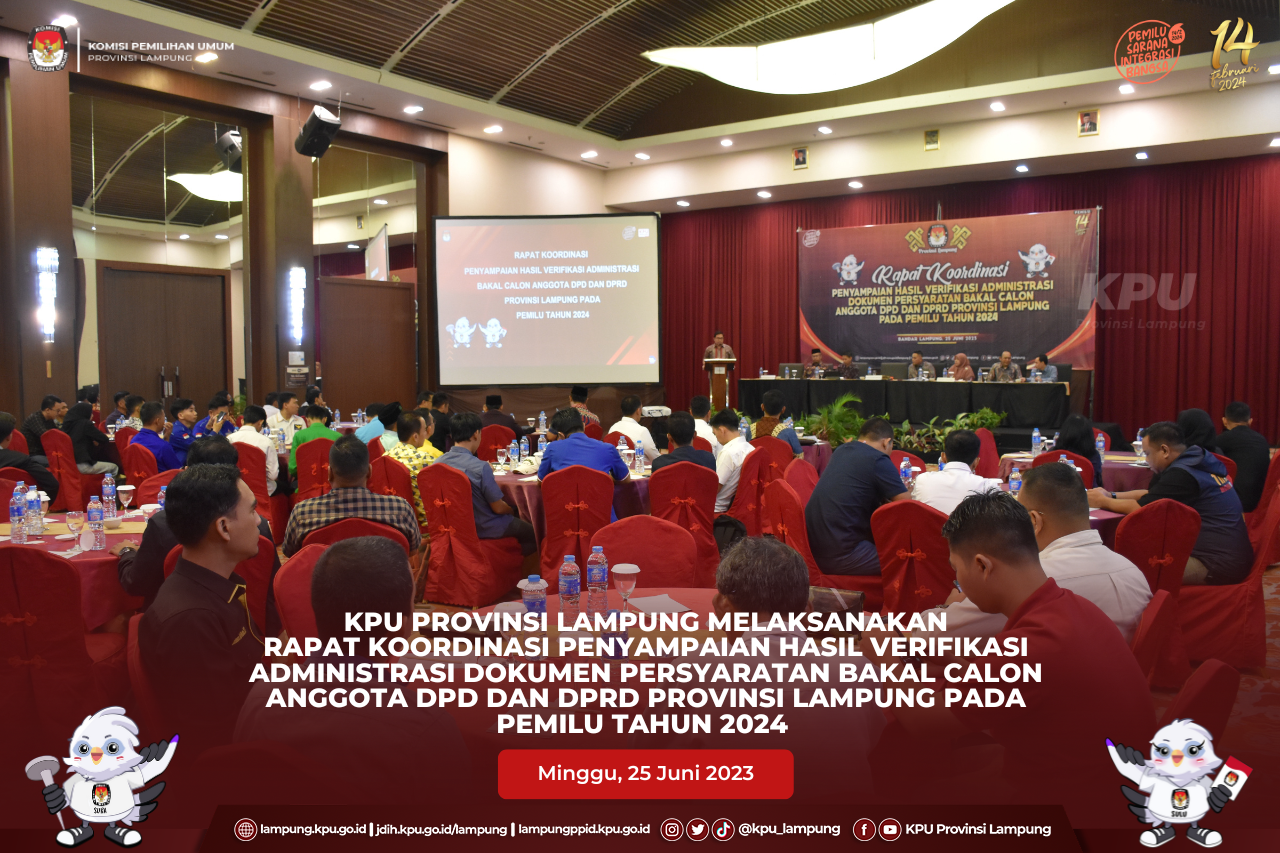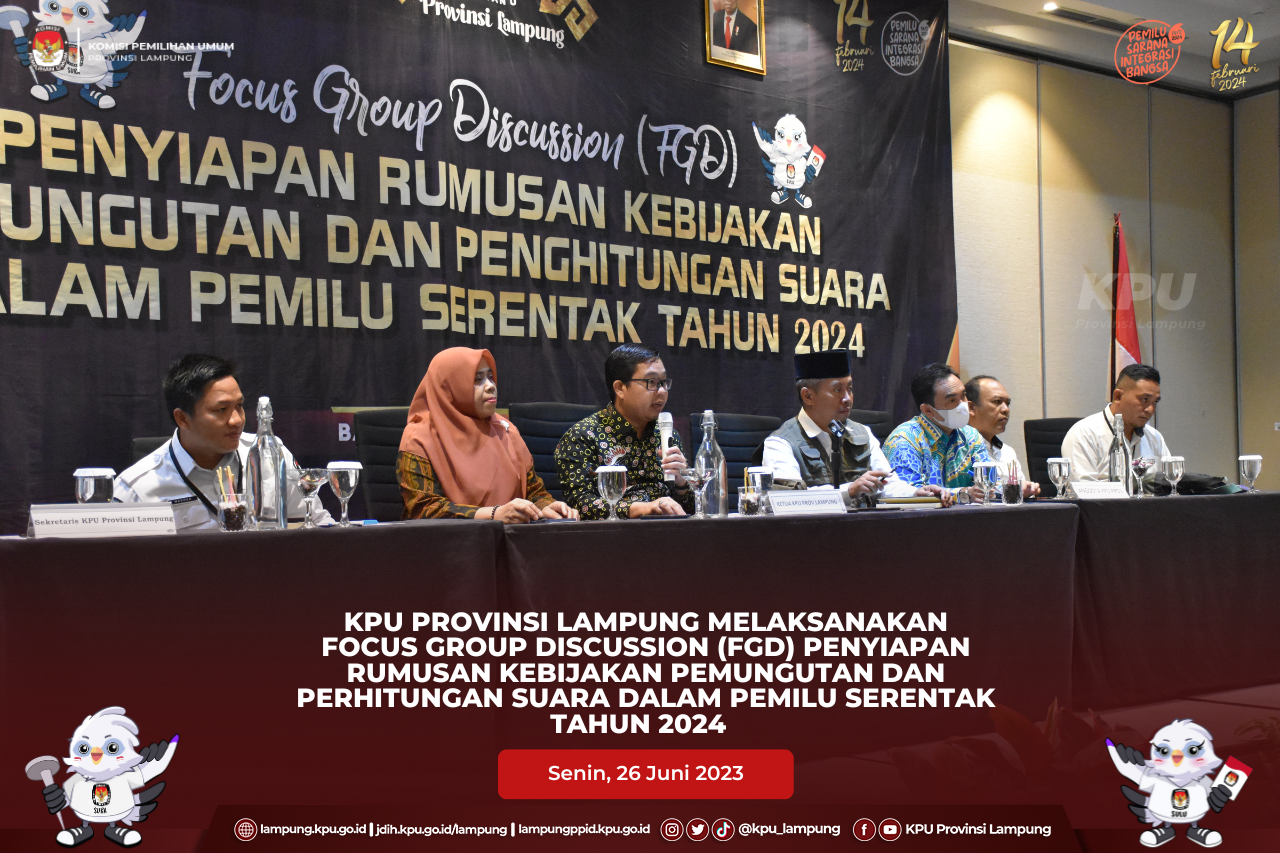 Bandar Lampung, KPU Provinsi Lampung melaksanakan Focus Group Discussion penyiapan rumusan kebijakan pemungutan dan perhitungan suara dalam pemilu tahun 2024, Senin (26/06/2023). Kegiatan berlangsung Di Ballroom Hotel Sheraton dan dibuka oleh Ketua KPU Provinsi Lampung, Erwan Bustami dengan didampingi oleh Anggota KPU Provinsi Lampung Ismanto, Titik Sutriningsih, Ali Sidik, Agus Riyanto dan Warsito serta Mashur Sampurna Jaya selaku Sekretaris KPU Provinsi Lampung. Dalam sambutannya Erwan Bustami menyampaikan bahwa dengan ada nya kegiatan FGD ini akan menampung aspirasi dan memberikan pemahaman yang sama terkait dengan isu strategis pemungutan dan perhitungan suara pada pemilu 2024. Ia menjelaskan bahwa terdapat tiga kebijakan strategis dalam pemungutan dan penghitungan suara yaitu terkait penghitungan suara yang dapat dilaksanakan secara pararel dimana kelompok pertama menghitung surat suara Presiden dan DPD dan kelompok kedua menghitung Surat Suara DPR, DPRD Provinsi dan DPRD Kabupaten/Kota. Selanjutnya yang kedua yaitu terkait penyampaian Salinan berita acara sertifikat hasil penghitungan suara kepada saksi dan pengawas TPS dapat digandakan menggunakan mesin fotocopy dilokasi TPS, dan yang ketiga adalah terkait penyederhaan formulir C dan Sertifikat Hasil Penghitungan Suara. kebijakan-kebijakan ini dilaksankan dalam rangka mempermudah penyelenggara Pemilu petugas KPPS menggunakan waktu secara efektif dan efisien hal ini juga didasari dengan pengalaman Pemilu 2019 lalu, dimana KPPS memiliki beban kerja yang sangat berat. Pada kegiatan ini menghadikan Akademisi Universitas Lampung, Prof. Dr. Yulianto. M.Si. sebagai narasumber Pemantik FGD. Kegiatan diikuti oleh undangan dari Forkopimda, Bawaslu Provinsi Lampung, Organisasi Kepemudaan, Partai Politik dan akademisi. #KPUMelayani #KPULampung #PemiluSerentak2024
