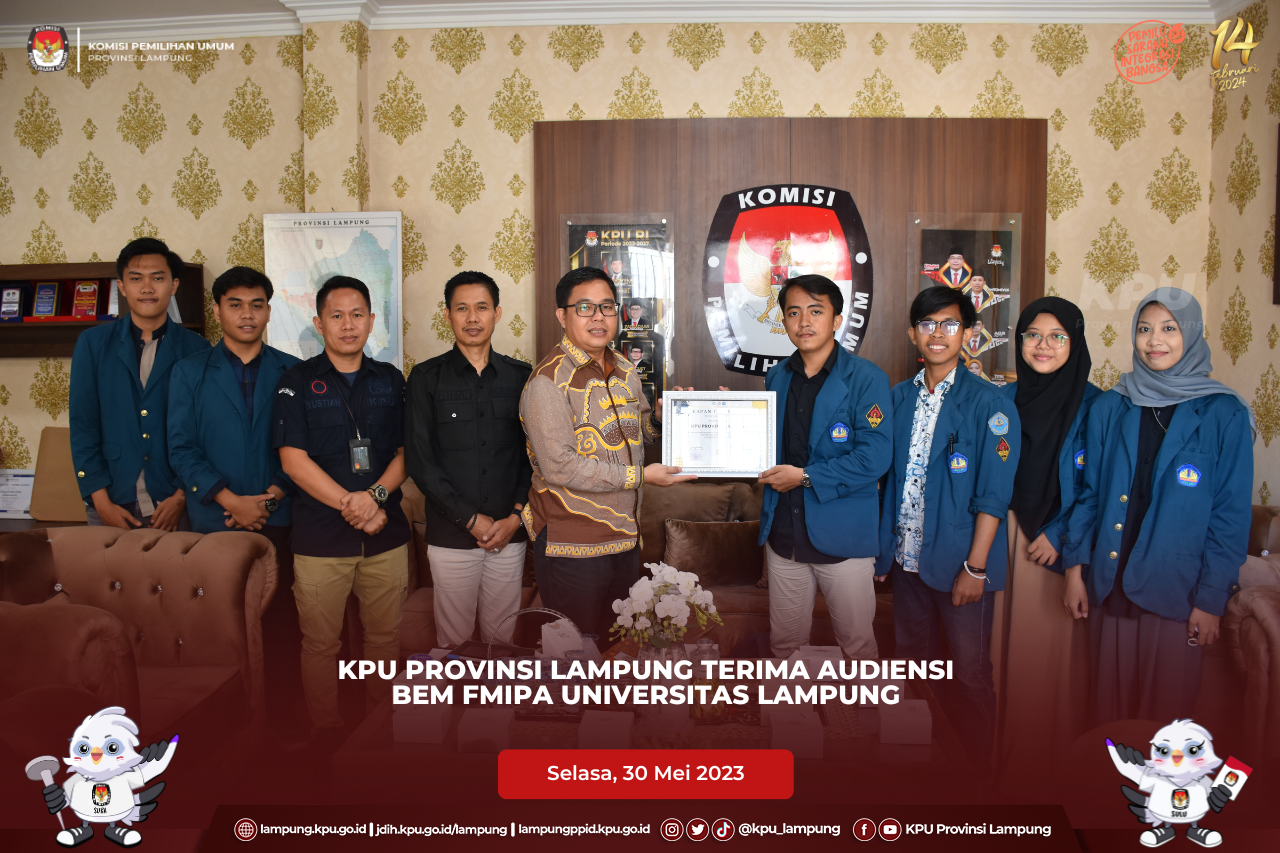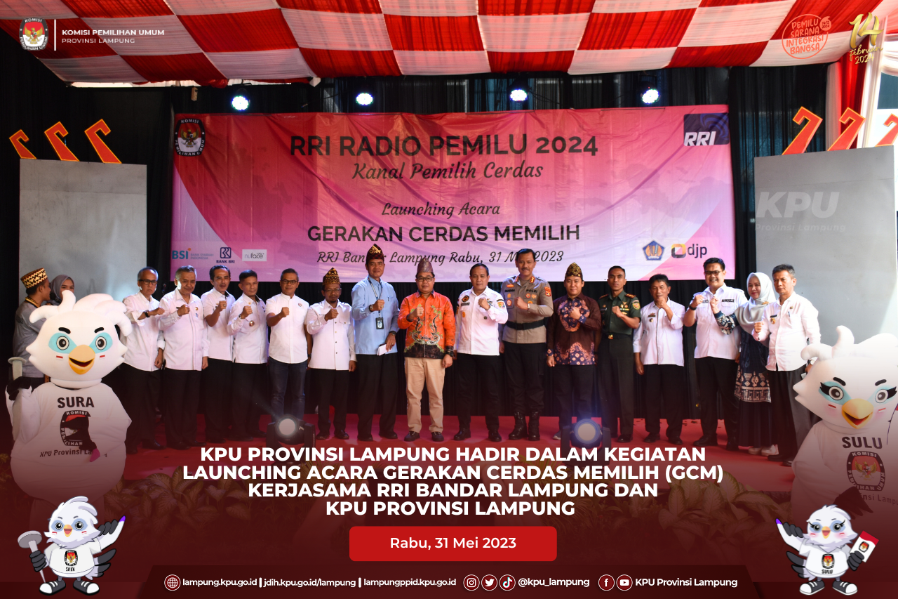 Bandar Lampung, Ketua KPU Provinsi Lampung, Erwan Bustami Bersama dengan Anggota Antoniyus, Titik Sutriningsih, Agus Riyanto, Ali Sidik dan Warsito serta Sekretaris Mashur Sampurna Jaya menghadiri kegiatan Launching Acara Gerakan Cerdas Memilih (GCM), Rabu (31/05). Kegiatan yang diselenggarakan oleh RRI Bandar Lampung dan bekerjasama dengan KPU Provinsi Lampung ini dibuka oleh Kepala LPP RRI Bandarlampung, Zahral Mutzaini. Dalam sambutannya saat membuka acara Zahral menyampaikan bahwa Program GCM yang digelar serentak di seluruh RRi se-Indonesia tersebut merupakan wujud tanggung jawab RRI sebagai Lembaga Penyiaran Publik dalam memberikan informasi dan edukasi jelang Pemilu tahun 2024 melalui berbagai program yang bisa menyentuh seluruh lapisan masyarakat. Oleh karena itu, Zahral berharap partisipasi dan peran serta dari berbagai pihak, khususnya Pemerintah Provinsi, Kabupaten/Kota, serta penyelenggara Pemilu sebagai narasumber dari berbagai program siaran Pemilu di RRI pada setiap programa. Senada dengan hal tersebut Ketua KPU Provinsi Lampung, Erwan Bustami menyampaiakn bahwa KPU Provinsi Lampung dan KPU Kabupaten/Kota se Provinsi Lampung menyambut baik kegiatan launcing Gerakan Cerdas Memilih, karena memang cerdas milih itu suatu keniscahyaan agar Pemilu di Tahun 2024 bisa berjalan demokratis dan Pemilu bisa memilih pemimpin-pemimpin yang ternaik di Provinsi Lampung. Kegiatan yang menampilkan berbagai hiburan tersebut juga menghadirkan Ketua KPU Provinsi Lampung, Erwan Bustami, Ketua Bawaslu Provinsi Lampung, Muhamad Teguh, dan Pengamat Politik Lampung, Dr Robi Cahyadi Kurniawan sebagai narasumber dialog singkat bertajuk “Demokrasi Menyongsong Pemilu”. Kegiatan diikuti oleh Pelajar dan Mahasiswa serta KPU dan Bawaslu Kabupaten/Kota di Provinsi Lampung. #KPUMelayani #KPULampung #PemiluSerentak2024