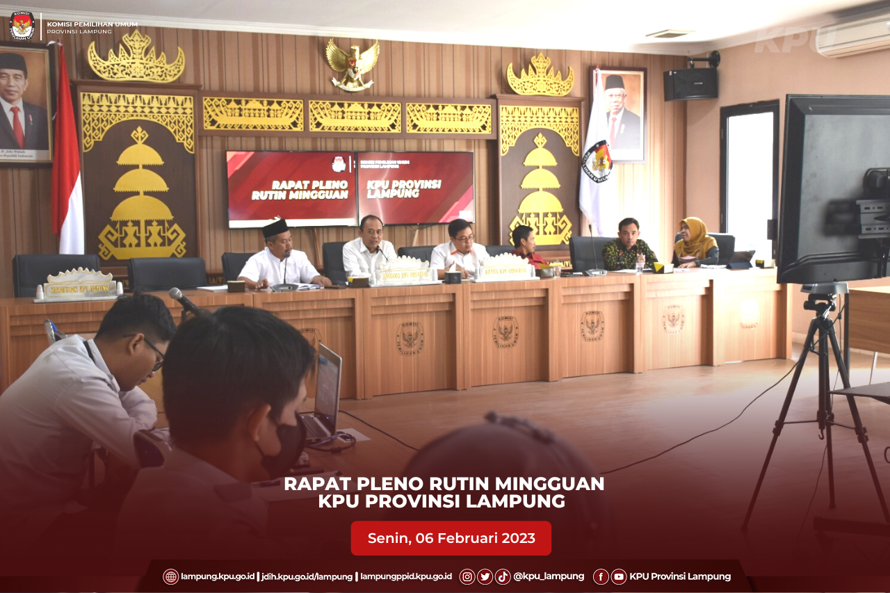 Bandar Lampung, KPU Provinsi Lampung melaksanakan Apel Rutin Mingguan, Senin (06/02). Kegiatan diikuti oleh Ketua KPU Provinsi Lampung, Erwan Bustami (daring), Anggota KPU Provinsi Lampung, Antoniyus dan Warsito, Para Kabag, Pejabat Fungsional, Para Kasubbag, Pelaksana dan PPNPN. Bertindak sebagai pembina apel, Anggota KPU Provinsi Lampung, Agus Riyanto. Agus Riyanto dalam amanatnya menyampaikan kepada peserta Apel bahwa tahapan-tahapan Pemilu dilaksanakan dalam rangka mewujudkan visi besar kelembagaan KPU Seluruh Indonesia yaitu menjadi penyelenggara Pemilu yang mandiri, professional dan berintegritas dalam rangka mewujudkan Pemilu yang LUBER JURDIL. Lebih lanjut Agus menjelaskan bahwa terdapat 6 misi dalam rangka mewujudkan visi besar tersebut yaitu pertama menjaga kualitas penyelenggaraan Pemilu, kedua Penyelenggaran Pemilu yang berkualitas didukung dengan sumber daya manusia yang mandiri, professional, berintegritas dan memiliki kompetensi tehadap penyelenggaraan Pemilu dan demokrasi di Indonesia. selanjutnya yang ketiga yaitu kualitas regulasi dalam rangka membangun kepastian hukum, keempat membangun pelayanan yang berkualitas untuk semua stakeholder yang mempunyai kepentingan terhadap penyelenggaraan pemilu, kelima terkait kualitas partisipasi pemilih dan yang terakhir yaitu bagaimana membangun dan memanfatakan teknologi informasi dalam rangka penyelenggaraan Pemilu dan Demokrasi di Indonesia. #KPULampung #PemiluSerentak2024 #KPUMelayani