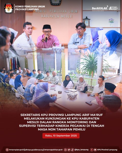 Sekretaris Komisi Pemilihan Umum (KPU) Provinsi Lampung, Arif Ma’ruf, melakukan kunjungan monitoring dan supervisi ke Kantor KPU Kabupaten Mesuji.