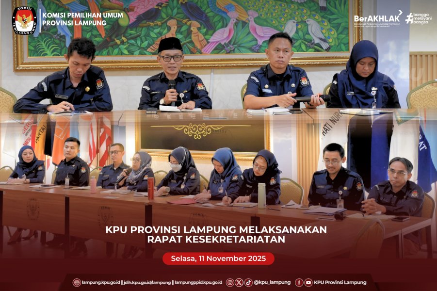 #TemanPemilih, (Kamis, 13 November 2025) KPU Provinsi Lampung melaksanakan Rapat Pleno Sistem Pengendalian Intern Pemerintah (SPIP) untuk Bulan Oktober 2025, pada Kamis, 13 November 2025, bertempat di Aula Kantor KPU Provinsi Lampung. Kegiatan tersebut diikuti oleh, Ketua KPU Provinsi Lampung Erwan Bustami dan Anggota KPU Provinsi Lampung Hermansyah, Angga Lazuardy, Dedi Fernando, Ervhan Jaya, Ahmad Zamroni, dan Febri Indra Kurniawan yang mengikuti secara daring serta jajaran Kepala Bagian, Kasubbag, operator SPIP, dan staf subbagian hukum. Rapat dipimpin oleh Ketua Divisi Hukum dan Pengawasan, Hermansyah, selaku koordinator pelaksanaan SPIP di lingkungan KPU Provinsi Lampung. Dalam arahannya, Hermansyah menyampaikan bahwa SPIP merupakan tanggung jawab bersama, bukan hanya menjadi tanggung jawab Sekretaris, Ketua, atau Divisi Hukum dan Pengawasan semata. Ia menegaskan pentingnya keterlibatan seluruh bagian dalam memastikan sistem pengendalian intern berjalan efektif dan berkelanjutan. Kegiatan ditutup dengan penandatanganan Laporan Hasil Pengisian Kartu Kendali SPIP Bulan Oktober 2025 oleh Sekretaris, Ketua dan Anggota KPU Provinsi Lampung, sebagai bentuk komitmen bersama dalam mewujudkan tata kelola pemerintahan yang bersih, transparan, dan akuntabel di KPU Provinsi Lampung. #KPULampung #KPUMelayani
