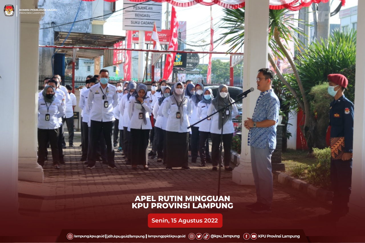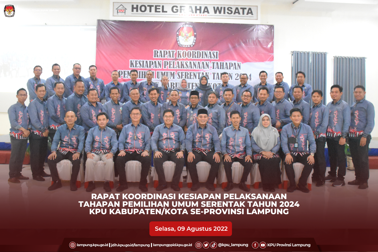 Lampung Utara, KPU Provinsi Lampung bersama dengan KPU Kabupaten Lampung Utara sebagai tuan rumah menyelenggarakan Rapat Koordinasi Kesiapan Pelaksanaan Tahapan Pemilihan Umum Serentak Tahun 2024 KPU Kabupaten/Kota se-Provinsi Lampung, Selasa (09/08). Kegiatan yang berlangsung selama dua hari, selasa dan rabu, 09-10 Agustus 2022 ini diikuti secara luring oleh Ketua dan Sekretaris dari 15 KPU Kabupaten Kota se Provinsi Lampung dan diikuti secara daring oleh Kabag Kasubbag di KPU Provinsi Lampung serta Anggota KPU Kabupaten/Kota beserta Kasubbag dari 15 Kabupaten/Kota se Provinsi Lampung. Hadir dalam kegiatan yang juga sebagai pemateri Ketua KPU Provinsi Lampung, Erwan Bustami, Anggota Ismanto, Titik Sutriningsih, Agus Riyanto, Antoniyus, M Tio Aliansyah, Ali Sidik, Sekretaris KPU Provinsi Lampung, Mashur Sampurna Jaya. Dalam kesempatan tersebut Anggota KPU RI, Mochammad Afifuddin memberi arahan via daring kepada peserta rapat. Dalam arahannya, Afif menyampaikan terkait perkembangan pendaftaran partai politik calon peserta pemilu yang terpusat di KPU RI, persiapan pola rekrutmen badan ad hoc di dalam dan di luar negeri, percepatan Peraturan KPU (PKPU) terutama PKPU Pemutakhiran Data Pemilih, dan juga tahapan penting lainnya seperti penataan daerah pemilihan. Lebih lanjut, Afif menilai dengan tidak berubahnya UU No. 7 Tahun 2017 tentang Pemilu, maka situasi yang dihadapi saat ini hampir dipastikan tidak berubah secara signifikan. Afif menekankan pentingnya menjaga terus kekompakan dan soliditas jajaran penyelenggara. #KPUMelayani #PemiluSerentak2024 #KPULampung