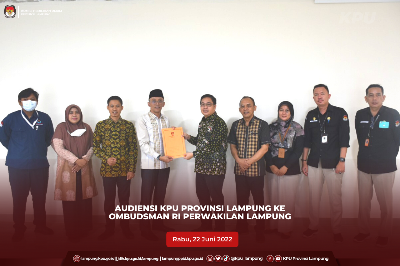 Bandar lampung, KPU Provinsi Lampung (Ketua, Erwan Bustami, Anggota M Tio Aliansyah, Ali Sidik, Sekretaris Mashur Sampurna Jaya, Kabag Teknis dan Parmas beserta jajaran) melanjutkan Audiensi ke Kejaksaan Tinggi Lampung, Kamis (23/06). Audiensi diterima oleh Wakil Kepala Kejaksaan Tinggi Lampung, Asnawi S.H, M.H. beserta jajaran di Ruang Kerjanya. Dalam audiensi Ketua KPU Lampung menyampaikan tahapan Penyelenggaraan Pemilu Tahun 2024 yang telah dimulai pada 14 Juni 2022 dan pemungutan suara yang akan dilaksanakan pada Rabu, 14 Februari 2024. Melalui audiensi Ketua KPU Lampung menyampaikan harapan adanya dukungan dari Kejaksaan Tinggi Lampung untuk bersama-sama menyukseskan Pemilu Tahun 2024 agar dapat berjalan aman dan damai. Dalam hal ini, Kejaksaan Tinggi berperan penting ketika terdapat gugatan terhadap KPU, baik pada proses tahapan berjalan maupun terhadap hasil Pemilu dan Pemilihan.