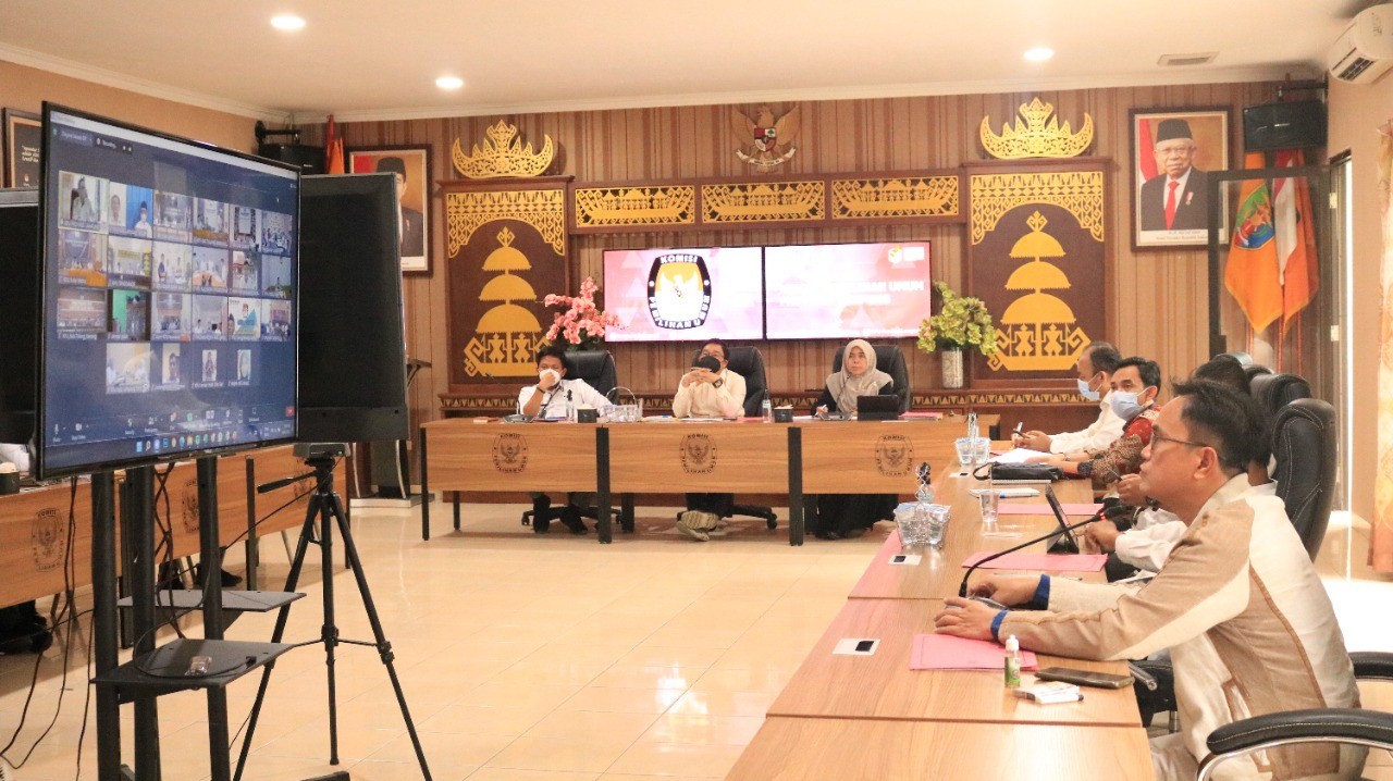 Bandar Lampung, KPU Provinsi Lampung bersama KPU Kabupaten / Kota se Provinsi Lampung melaksanakan Rapat Koordinasi Pemantapan dan Penetapan Rancangan RAB Hibah Pemilihan Serentak Tahun 2024, secara luring dan daring di Aula KPU Provinsi Lampung, Senin (30/05). Kegiatan rapat yang dibuka oleh Ketua KPU Provinsi Lampung, Erwan Bustami kemudian dipimpin oleh Ketua Divisi Perencanaan dan Logistik, Titik Sutriningsih dan diikuti oleh Anggota KPU Provinsi Lampung, Ali Sidik, Agus Riyanto, M Tio Aliansyah, Ismanto dan Antoniyus beserta Sekretaris, Mashur Sampurna Jaya dan jajaran, dan Ketua KPU Kabupaten/Kota, Sekretaris, Kepala Subbagian Perencanaan, Data dan Informasi dan staf. Rapat dilaksanakan untuk memantapkan dan menetapkan besaran pengajuan kebutuhan biaya pelaksanaan Pemilihan Serentak Tahun 2024 dan menjadwalkan pelaksanaan pengajuan tersebut secara serentak kepada masing-masing Pemerintah Daerah.