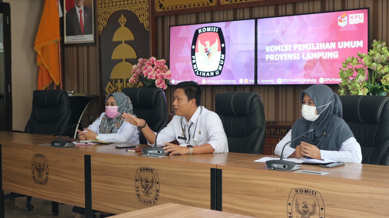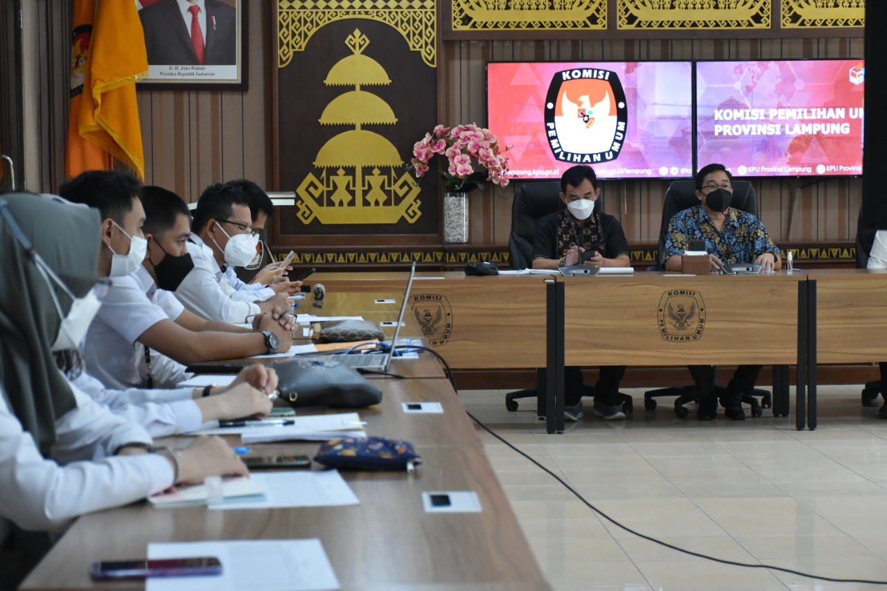 Bandar Lampung, KPU Provinsi Lampung melaksanakan Rapat Rekapitulasi Pemutakhiran Data Pemilih Berkelanjutan Periode Bulan Maret Tingkat Provinsi Tahun 2022, Kamis (7/04). Kegiatan yang dilaksanakan di Aula Kantor KPU Provinsi Lampung dibuka oleh Ketua KPU Provinsi Lampung, Erwan Bustami dan diikuti oleh Anggota KPU Provinsi Lampung, Agus Riyanto, Titik Sutriningsih, Ali Sidik, M Tio Aliansyah, Ismanto, serta diikuti secara daring oleh Anggota KPU Provinsi Lampung Antoniyus dan KPU Kabupaten Kota Se Provinsi Lampung.