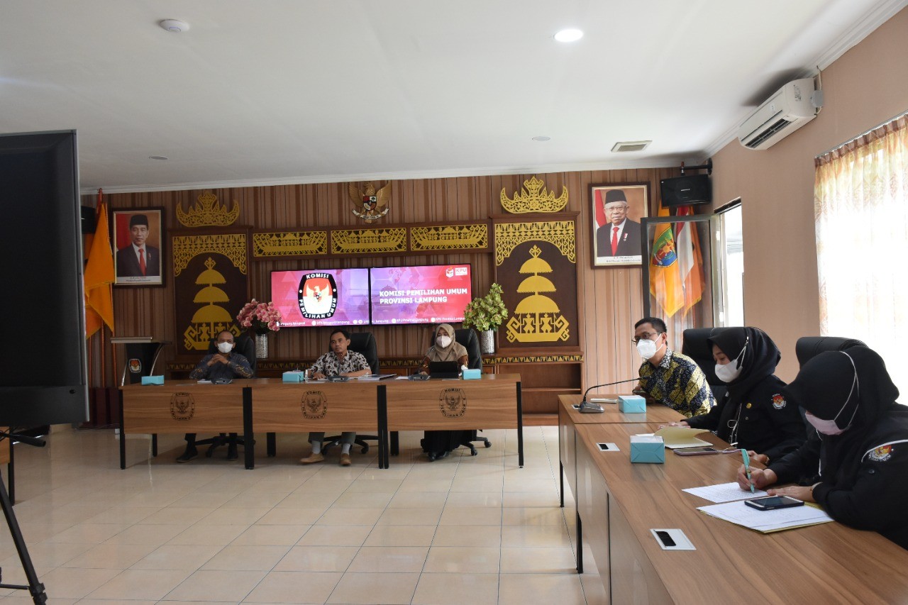 Bandar Lampung, KPU Provinsi Lampung melaksanakan kegiatan Rapat Koordinasi Pemutakhiran Data Pemilih Berkelanjutan Tahun 2022, Rabu (16/03). Kegiatan dilaksankan di Aula KPU Provinsi Lampung dan diikuti secara daring oleh 15 KPU Kabupaten/Kota se Provinsi Lampung Divisi Data dan Informasi, Kasubbag dan Operator. Kegiatan yang dibuka oleh Ketua Divisi Data dan Informasi KPU Provinsi Lampung, Agus Riyanto juga dihadiri oleh Anggota KPU Provinsi Lampung, Ali Sidik, Titik Sutriningsih dan M Tio Aliansyah serta Kasubbag di KPU Provinsi Lampung. Dalam kegiatan diawali dengan pengenalan Kasubbag Datin KPU Kabupaten/Kota pasca pelantikan pejabat pengawas di KPU Provinsi dan KPU Kabupaten/Kota se Provinsi Lampung dilanjutkan dengan Sosialisasi Aplikasi “Lindungi Hakmu”, Persiapan Rakor DPB Triwulan 1 KPU Kabupaten/Kota, Pemetaan Dini TPS Pemilu 2024 dan juga mengenalkan tata Kelola Tim Datin. Agus menyampaikan bahwa dalam Tim Datin terdapat 4 Tata Kelola seperti Tata Manajemen yang merupakan tata kelola SDM solid dan kuat, kerja efektif dan terukur, Tata Layanan Pemilih yang melindungi Hak Pilih Tanpa Diskriminasi, Tata Sinergi Kelembagaan dimana terdapat koordinasi, Komunikasi dan Konsolidasi intensif dan efektif kepada stakeholder dan terakhir adalah Tata Kelola Publikasi Informasi yang Terstruktur, Sistematis dan Masif. Dalam hal Pemetaan dini TPS menuju Pemilu 2024, Agus menyampaikan bahwa jumlah Pemilih perTPS paling banyak 300 orang dengan prinsip pemetaan TPS yaitu tidak menggabungkan kelurahan/Desa, kemudahan pemilih ke TPS, tidak memishakan pemilih dalam satu keluarga pada TPS yang berbeda, dan juga memperhatikan jarak dan waktu tempuh menuju TPS dengan mempertimbangkan tenggang waktu pemungutan suara. #KPUMelayani #KPULampung