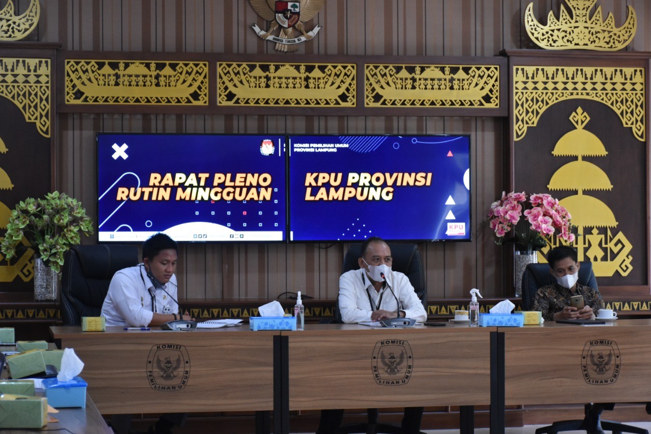 Dalam rapat pleno rutin mingguan ini persiapan Rapat Koordinasi Peningkatan Kualitas Sumber Daya Manusia Bagi Komisioner dan Aparatur Sipil Negara Komisi Pemilihan Umum Kabupaten/Kota Se-Provinsi Lampung, Kegiatan Penandatanganan Nota Kesepahaman Program Desa Peduli Pemilu dan Pemilihan antara KPU Kabupaten Lampung Timur dengan Pemerintah Kabupaten Lampung Timur dan Rapat Rekapitulasi Pemutakhiran Data Pemilih Berkelanjutan Semester II Tingkat Provinsi Tahun 2021 serta pembahasan rencana program di tahun 2022.