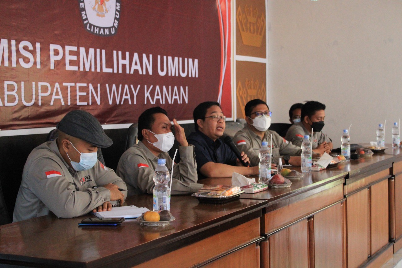 Bandar Lampung, KPU Provinsi Lampung melaksanakan Rapat Pleno Rutin Mingguan di aula kantor KPU Provinsi Lampung, Senin (27/12). Kegiatan Rapat yang dipimpin oleh Anggota KPU Provinsi Lampung, Ali Sidik dihadiri oleh Ketua KPU Provinsi Lampung, Erwan Bustami via daring, Anggota KPU Provinsi Lampung, Antoniyus , M Tio Aliansyah, Agus Riyanto, Titik Sutriningsih, Sekretaris KPU Provinsi Lampung, Mashur Sampurna Jaya serta Koordinator dan Subkoordinator.