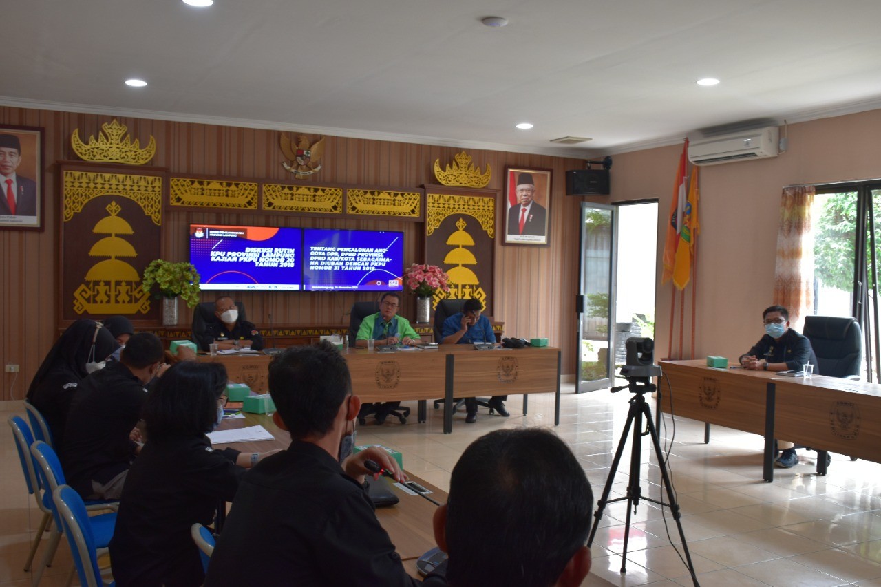 Bandar Lampung, KPU Provinsi Lampung (Komisioner Divisi Hukum dan Pengawasan, M. Tio Aliansyah, Sekretaris KPU Mashur Sampurna Jaya serta Kabag Umum dan Satuan Jagat Saksana KPU Provinsi Lampung) mengikuti Rapat Konsolidasi dan Sosialisasi Penggunaan Seragam dan Atribut Pakaian Dinas Luar (PDL) dan Jadwal Pemakaian Seragam Bagi Satuan Jagat Saksana Sekretariat Jenderal KPU RI dan Sekretariat KPU Provinsi dan KIP Aceh secara daring, (25/11). Pada kegiatan tersebut, Sekretaris Jenderal KPU Republik Indonesia, Bernad Dermawan Sutrisno yang didampingi Deputi Administrasi, Kepala Biro Umum dan Kabag Pamdal KPU RI, Menyampaikan Kepada Seluruh Satuan Jagat Saksana untuk dapat bekerja secara profesional sesuai tupoksi dengan mengedepankan pengamanan terhadap Pimpinan dan juga kantor KPU, seperti Arti Filosofi Jagat Saksana yaitu Penjaga Pimpinan dan Calon Pemimpin Bangsa ditempat mereka ditugaskan.