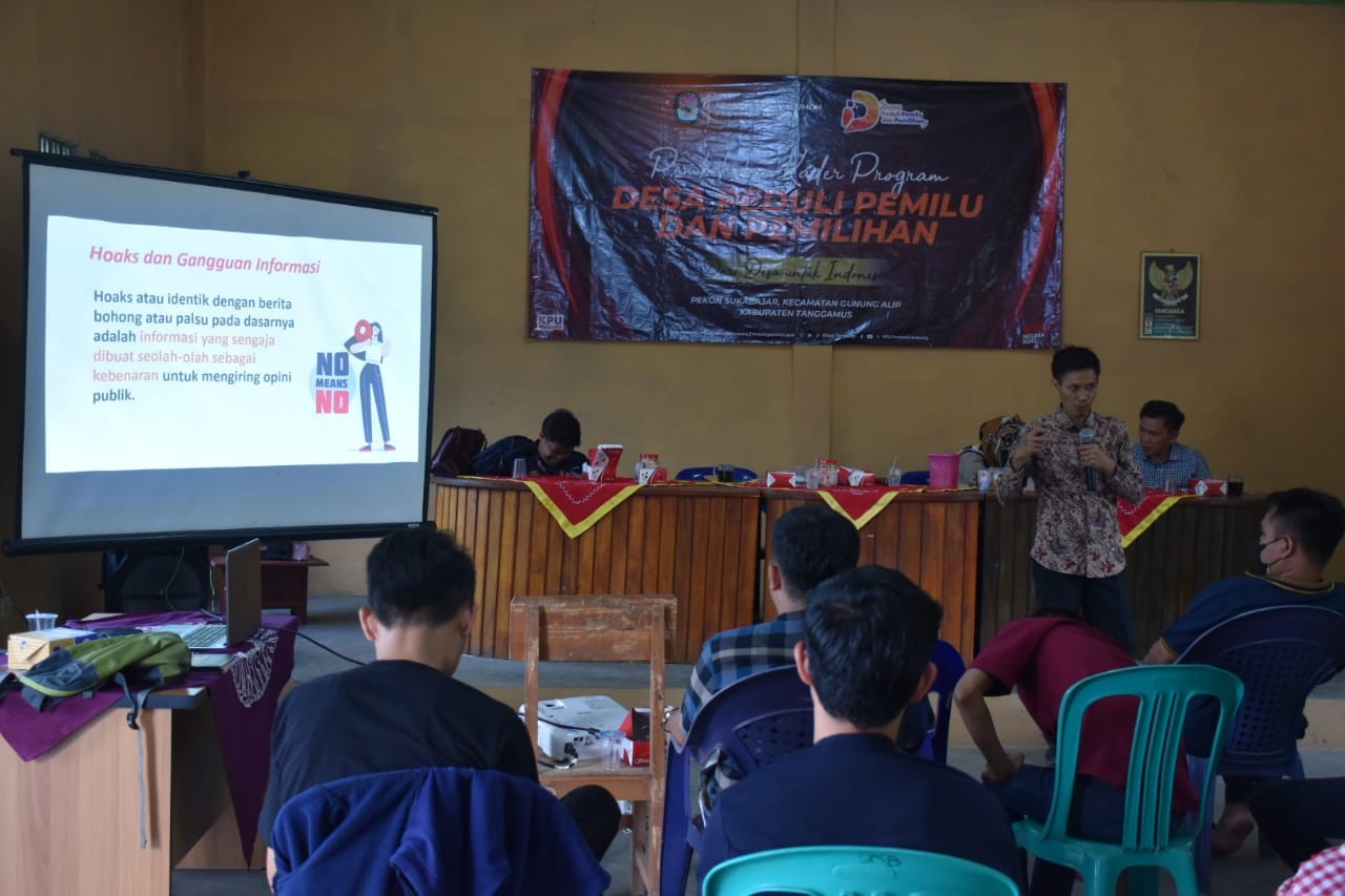 Tanggamus – Pemilihan umum (Pemilu) dan Pemilihan sebagai salah suatu wujud nyata penerapan negara demokrasi yang menjadi sarana rakyat dalam menegakkan kedaulatannya terhadap negara dan pemerintahan. Perwujudan bentuk kedaulatan rakyat ditandai dengan adanya partisipasi masyarakat dalam penyelenggaraan Pemilu dan Pemilihan. Namun sayangnya, pelaksanaannya seringkali dicedarai dengan adanya pelanggaran-pelanggaran seperti Kampanye SARA (Suku, Agama, Ras dan Antargolongan) dan Politik Uang serta adanya penyebaran Berita Hoaks/Bohong. Hal-hal mengenai pelanggaran-pelanggaran tersebut dijelaskan secara detail dalam agenda pertemuan kedua pembekalan kader Desa Peduli Pemilu dan Pemilihan (DP3), Minggu (10/10)