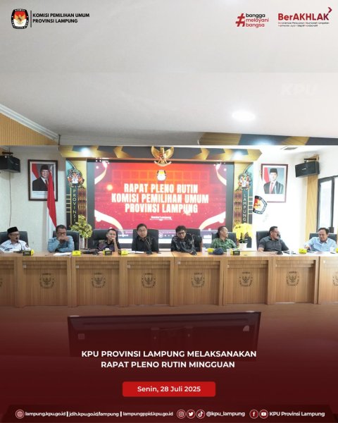 KPU Provinsi Lampung melaksanakan Rapat Pleno Rutin Mingguan bertempat di Aula Kantor KPU Provinsi Lampung.