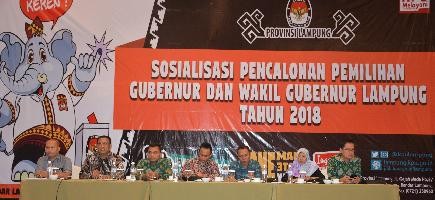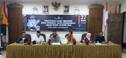 BANDAR LAMPUNG (kpu prov lampung) -- Sesuai dengan peraturan komisi pemilihan umum nomor 1 terkait tahapan, program, dan jadwal Pilgub Tahun 2018 sejak tanggal 22- 26 November 2018 KPU Provinsi Lampung membuka kesempatan bagi calon perseorangan untuk menyerahkan syarat dukungan ke KPU Provinsi Lampung sebagai syarat untuk menjadi calon gubernur dan wakil gubernur dari jalur perseorangan. Namun hingga tanggal 26 November 2018 pukul 00.00 KPU Provinsi Lampung tidak menerima 1 pun bakal calon gubernur dan wakil gubernur yang memberikan berkas syarat dukungan calon perseorangan. Untuk Pilgub Lampung sebagai syarat dukungan calon perseorangan minimal 456.594 dukungan masyarakat dengan dibuktkan menggunakan softcopy dan hardcopy KTP EL atau surat keterangan (suket) dari Disdukcapil dan tanda tangan pendukung yang tersebar paling sedikit 8 kabupaten/kota. "Kita secara resmi menutup penyerahan berkas calon perseorangan atau jalur independen." kata Ketua KPU Provinsi Lampung, Nanang Trenggono di aula KPU Provinsi Lampung (26/11/2017) malam. Penutupan penerimaan berkas calon perseorangan itu dihadiri seluruh Komisioner KPU Provinsi Lampung dan juga Komisioner Bawaslu Iskardo P Panggar.