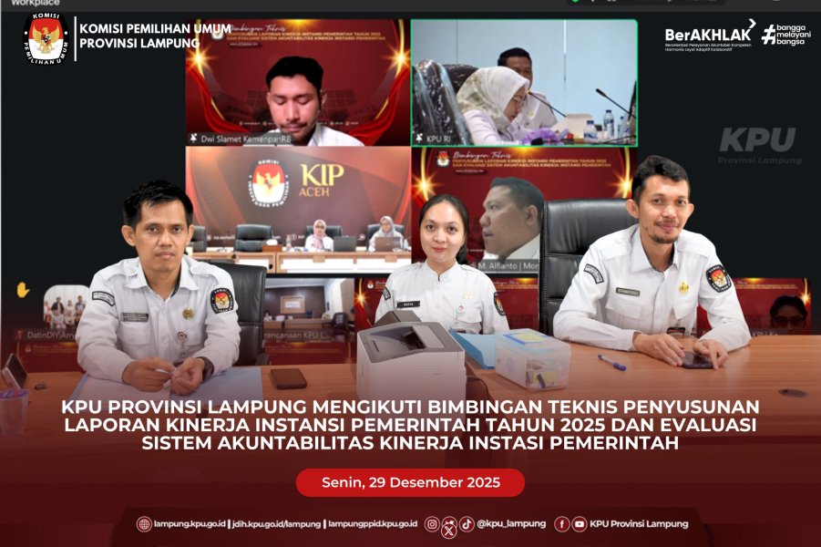 #TemanPemilih, Sekretaris KPU Provinsi Lampung Arif Ma’ruf, bersama Kepala Bagian Perencanaan, Data dan Informasi A.Ingga Arasyi, Kepala Bagian Keuangan dan Logistik Reni Lestiani, Kepala Sub Bagian Perencanaan Sri Merinda Kusumayuda, Kepala Subbagian Keuangan Diaz Lelianti Azis YR beserta Bendahara, PPK dan Operator Sakti mengikuti Kegiatan Rapat Evaluasi Kinerja Penganggaran dan Kualitas Pelaksanaan Anggaran Tahun Anggaran 2025 yang diselenggarakan oleh KPU RI secara daring tanggal 30 Desember 2025 pukul 09.00 s.d 17.00 WIB. Kegiatan dilaksanakan sebagai implementasi dari Peraturan Menteri Keuangan Nomor 22/PMK.02/2021 Tentang Pengukuran dan Evaluasi Kinerja Anggaran atas rencana Kerja dan Anggaran Kementerian Negara/Lembaga, dan dalam rangka meningkatkan Nilai Kinerja Anggaran KPU Tahun 2025. Kegiatan ini dibuka secara resmi oleh Kepala Biro Perencanaan dan Organisasi KPU M. Syahrizal Iskandar, dihadiri oleh seluruh KPU Provinsi dan KPU Kabupaten/Kota seluruh Indonesia, dengan narasumber dari Biro Keuangan KPU RI, Kementerian Keuangan RI, dan Badan Pengawasan Keuangan dan Pembangunan (BPKP) RI. Pada sesi pertama disampaikan materi terkait Realisasi Anggaran pada KPU, KPU Provinsi/KIP Aceh dan KPU/KIP Kabupaten/Kota Tahun Anggaran 2025 dan ketentuan Langkah-langkah Akhir Tahun Anggaran 2025 oleh Kepala Biro Keuangan KPU RI, yang dilanjutkan materi oleh Narasumber dari Direktur Sistem Penganggaran Direktorat Jenderal Anggaran Kementerian Keuangan yang menyampaikan materi Evaluasi Kinerja Penganggaran pada KPU, KPU Provinsi/KIP Aceh dan KPU/KIP Kabupaten/Kota Tahun Anggaran 2025, serta dari narasumber Direktur Pelaksanaan Anggaran Direktorat Jenderal Perbendaharaan Kementerian Keuangan yang menyampaikan materi Evaluasi Kualitas Pelaksanaan Anggaran pada KPU, KPU Provinsi/KIP Aceh dan KPU/KIP Kabupaten/Kota Tahun Anggaran 2025. Sementara itu, pada Sesi kedua pemaparan dari Direktur Pengawasan Bidang Politik dan Penegakan Hukum BPKP yang menyampaikan materi terkait Evaluasi Penyerapan Pengadaan Barang dan Jasa (PBJ) pada KPU, KPU Provinsi/KIP Aceh dan KPU/KIP Kabupaten/Kota Tahun Anggaran 2025. Berdasarkan evaluasi terhadap Indikator Kinerja Pelaksanaan Angaran KPU Tahun Anggaran 2025 (sampai dengan November 2025) diperoleh nilai IKPA sebesar 92,81. Nilai IKPA Tahun 2025 ini mengalami kenaikan dari periode yang sama pada tahun 2024 dengan nilai IKPA 87,21. Diharapkan nilai pelaksanaan anggaran tersebut dapat dipertahankan atau meningkat hingga berakhirnya periode anggaran Tahun 2025 melalui kontribusi seluruh Satker dalam mengoptimalkan pelaksanaan anggaran di masing-masing Satker. #KPUMelayani #KPULampung