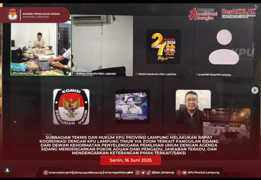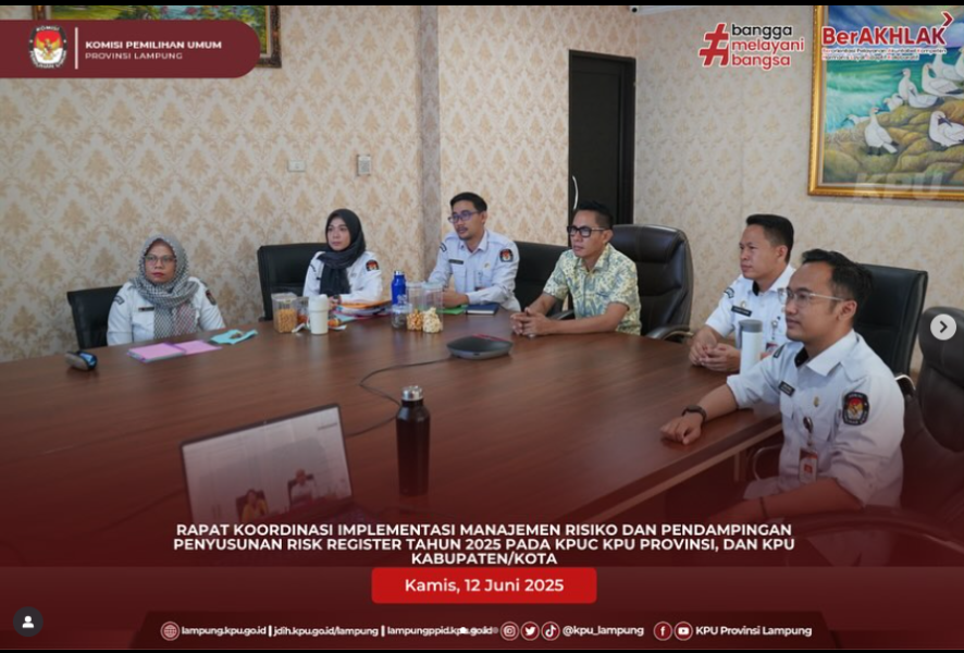 Anggota KPU Provinsi Lampung Hermansyah dan Tim Sekretariat KPU Provinsi Lampung mengikuti kegiatan Rapat Koordinasi Implementasi Manajemen Risiko dan Pendampingan Penyusunan Risk Register Tahun 2025 pada KPU, KPU Provinsi, dan KPU Kabupaten/Kota melalui zoom meeting.