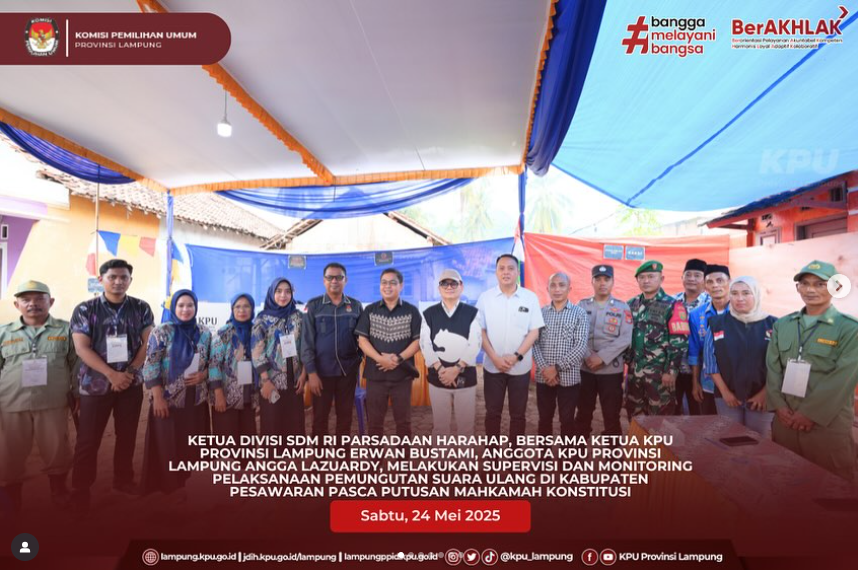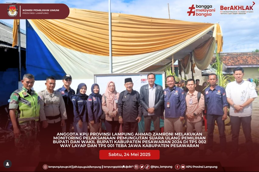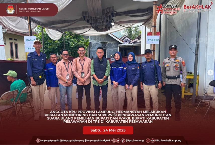 Anggota KPU Provinsi Lampung Febri Indra Kurniawan dan Ervhan Jaya melaksanakan Monitoring Pelaksanaan Pemungutan Suara Ulang (PSU) Pilkada Kabupaten Pesawaran Tahun 2025.