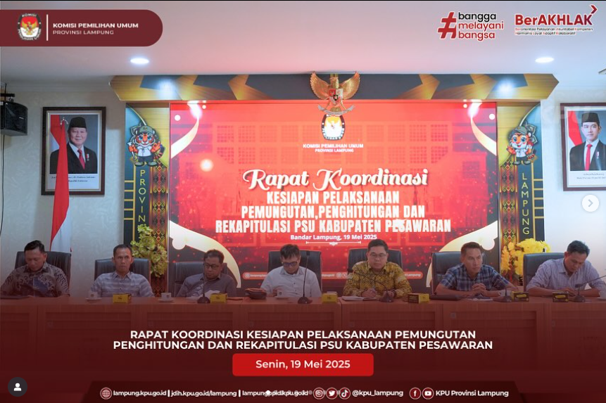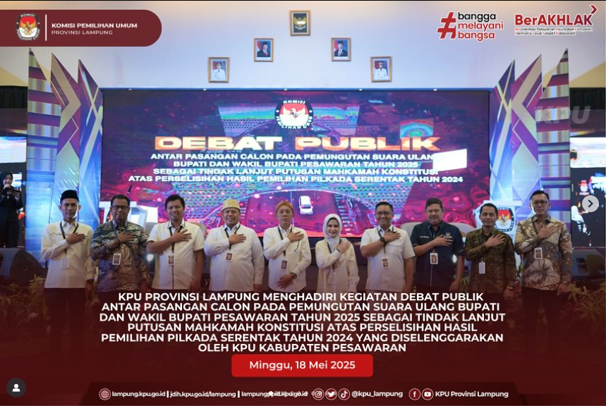 Anggota KPU Provinsi Lampung, Dedi Fernando, Angga Lazuardy, Ervhan Jaya, dan Febri Indra Kurniawan menghadiri Kegiatan Debat Publik Antar Pasangan Calon Pada Pemungutan Suara Ulang Bupati dan Wakil Bupati Pesawaran Tahun 2025 Sebagai Tindak Lanjut Putusan Mahkamah Konstitusi Atas Perselisihan Hasil Pemilihan Pilkada Serentak Tahun 2024 yang diselenggarakan oleh KPU Kabupaten Pesawaran di Hotel Emersia Bandar Lampung.