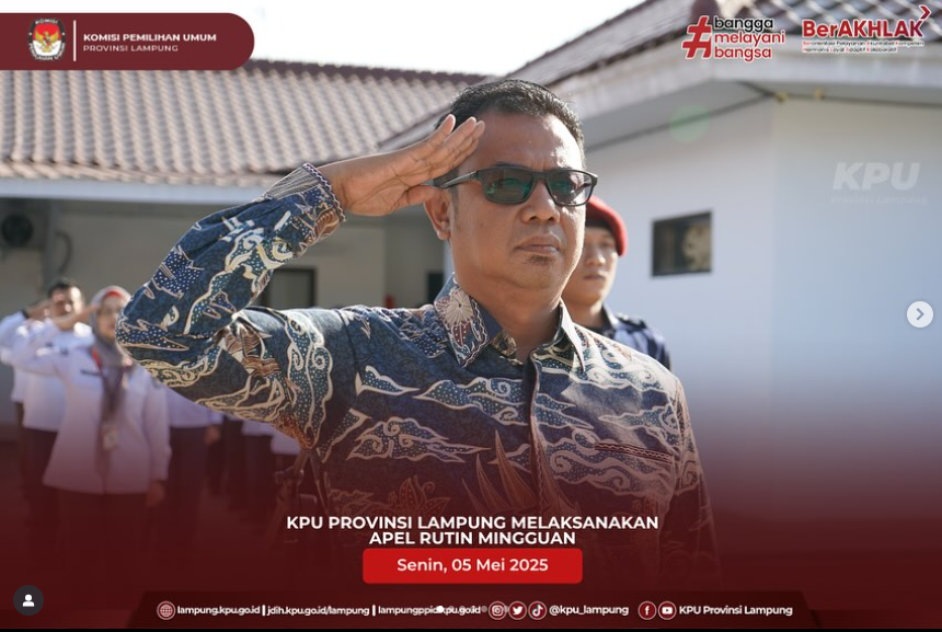 KPU Provinsi Lampung melaksanakan apel rutin mingguan dihalaman Kantor KPU Provinsi Lampung.