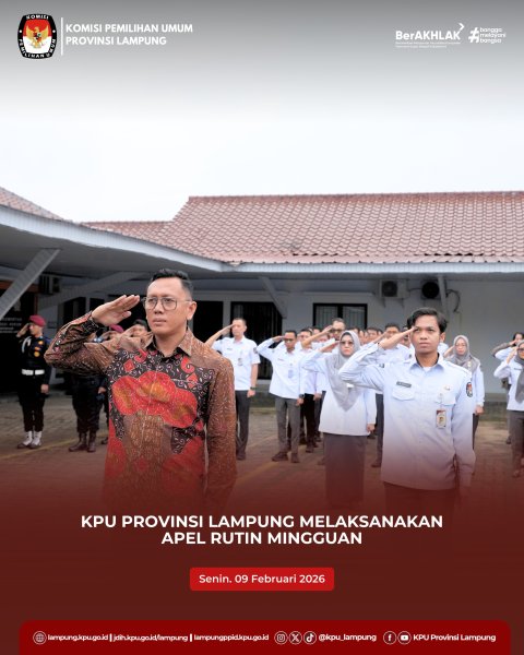 #TemanPemilih, KPU Provinsi Lampung melaksanakan Rapat Koordinasi Internalisasi Kebijakan dan Sinkronisasi Kegiatan Teknis Kepemiluan Tahun 2026 bersama KPU Kabupaten/Kota se-Provinsi Lampung secara daring di Aula Kantor KPU Provinsi Lampung, Selasa (10/02/2026). Kegiatan dilaksanakan sebagai tindak lanjut hasil Rapat Koordinasi yang diselenggarakan oleh KPU RI. Kegiatan dibuka oleh Plh. Ketua KPU Provinsi Lampung Angga Lazuardy Bersama dengan Anggota KPU Provinsi Lampung, Ketua Divisi Teknis Penyelenggaraan Pemilu, Febri Indra Kurniawan dengan didampingi oleh Kabag Teknis Penyelenggaraan Pemilu dan Parmas Yustian Umri Sangon, Kabag Perencanaan Data dan Informasi A. Ingga Arasyi, Kasubbag Teknis Penyelenggaraan Pemilu R. Ismail As’ad, serta Kasubbag Perencanaan Sri Merinda Kusumayuda. Dalam sambutannya, Angga Lazuardy menekankan pentingnya disiplin, komitmen, dan profesionalitas seluruh jajaran dalam melaksanakan tugas kepemiluan, mengingat setiap kegiatan memiliki konsekuensi anggaran dan tanggung jawab kelembagaan. Ia juga mengingatkan kepada peserta untuk mengikuti secara penuh kegiatan sehingga seluruh jajaran dapat memahami secara komprehensif kegiatan yang akan dilaksanakan mendatang. Penyampaian materi oleh Ketua Divisi Teknis Penyelenggaraan Pemilu Febri Indra Kurniawan, Materi yang disampaikan mencakup penataan daerah pemilihan dan alokasi kursi serta rencana kegiatan Divisi Teknis Penyelenggaraan Pemilu Tahun 2026. Melalui kegiatan ini diharapkan terjadi keselarasan pemahaman serta sinkronisasi pelaksanaan kegiatan Teknis Kepemiluan antara KPU RI, KPU Provinsi dan KPU Kabupaten/Kota di Tahun 2026. #KPULampung #KPUMelayani