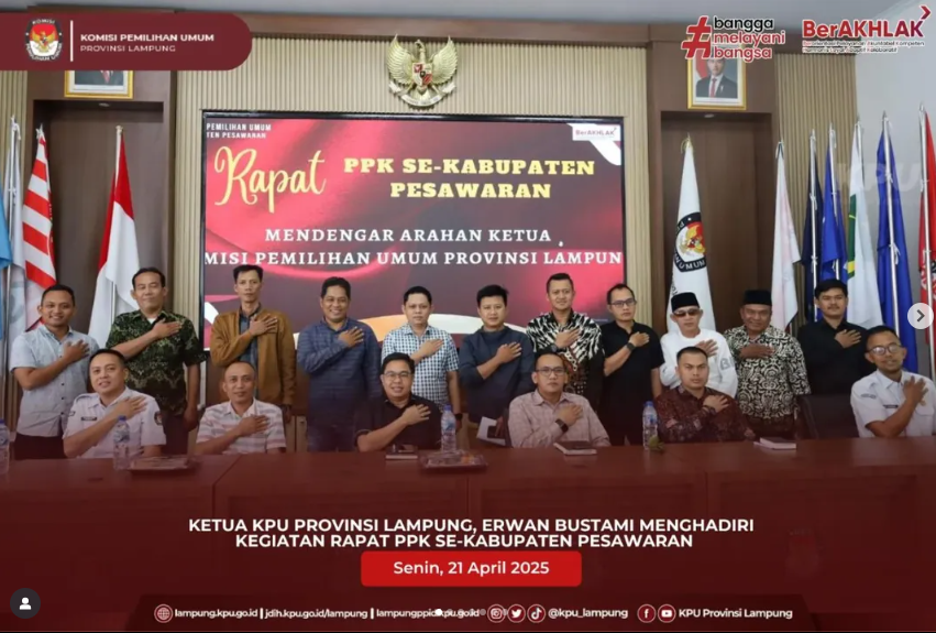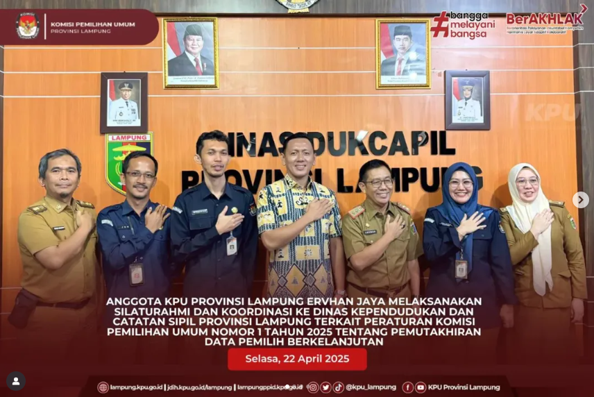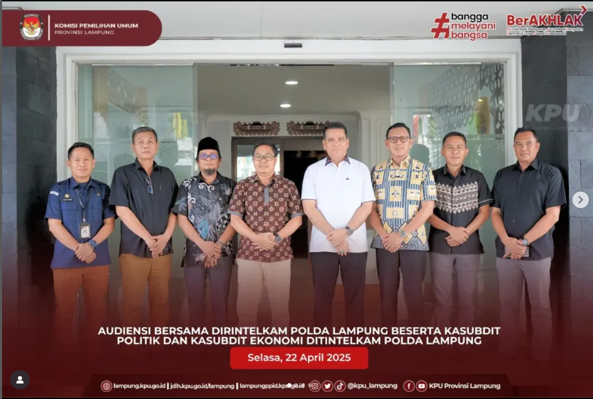 Kegiatan audiensi bertujuan dalam rangka silaturahmi antara KPU Provinsi Lampung dengan Ditintelkam Polda Lampung.