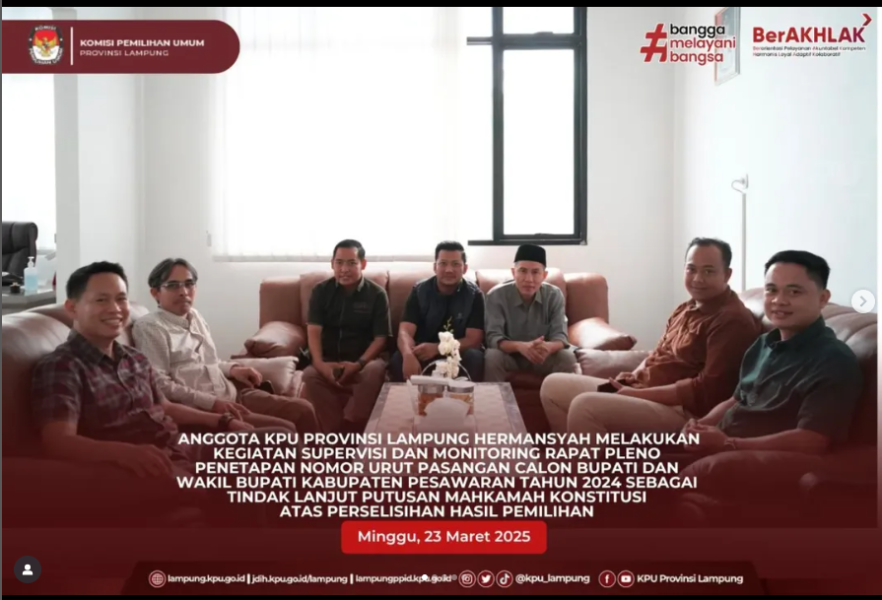 Pertemuan ini membahas kesiapan Pemungutan Suara Ulang (PSU) di Kabupaten Pesawaran serta koordinasi terkait anggaran dan pengawasan tahapan PSU.