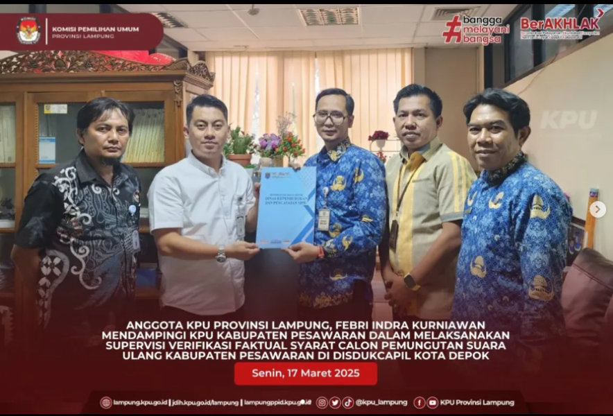 Ketua Divisi Perencanaan dan Logistik KPU Provinsi Lampung, Bapak Ahmad Zamroni, bersama Kepala Subbagian Umum dan Logistik, Bapak Azriando, beserta staf sekretariat KPU Provinsi Lampung melaksanakan monitoring dan supervisi di KPU Kabupaten Mesuji.
