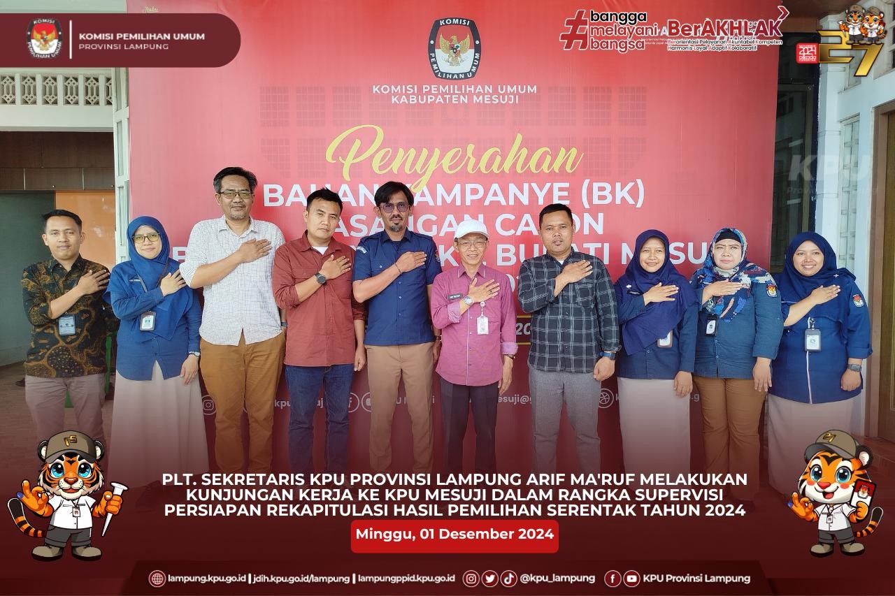 Plt. Sekretaris KPU Provinsi Lampung Arif Ma'ruf yang didampingi Kasubag Parmas M. Ade Candra beserta tim Sekretariat, melakukan kunjungan kerja ke KPU Mesuji dalam rangka Supervisi Persiapan Rekapitulasi Hasil Pemilihan Serentak Tahun 2024.