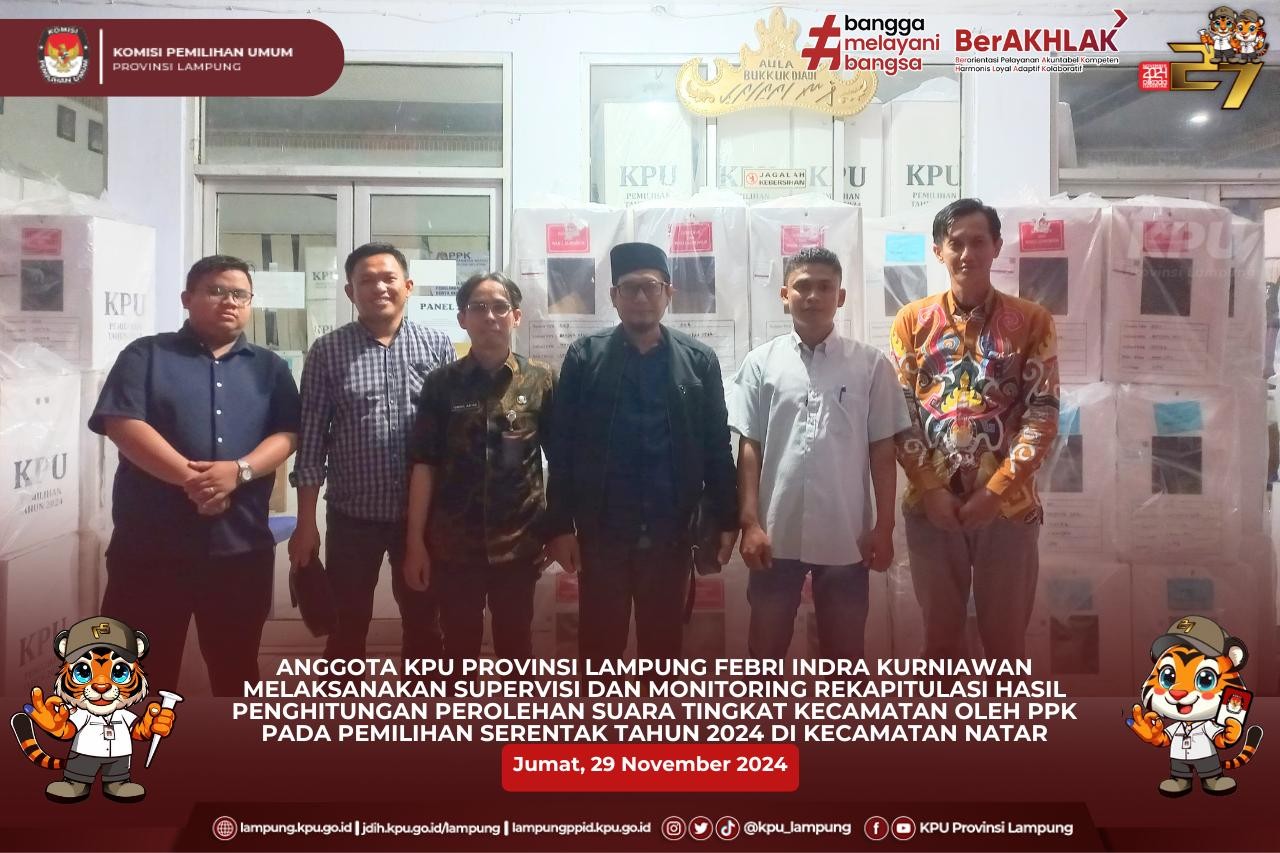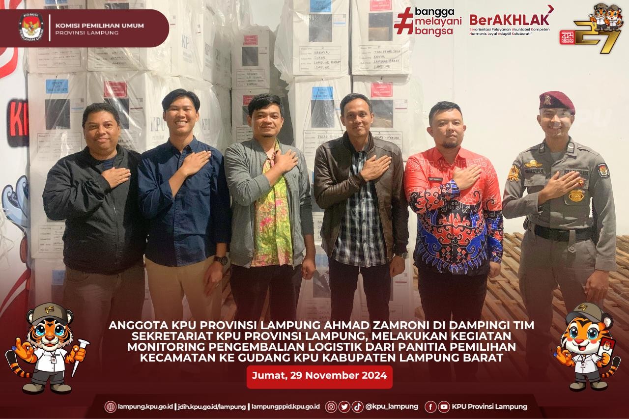 Anggota KPU Provinsi Lampung (Ketua Divisi Perencanaan dan Logistik), Ahmad Zamroni di dampingi tim Sekretariat KPU Provinsi Lampung, melakukan kegiatan monitoring pengembalian logistik dari Panitia Pemilihan Kecamatan (PPK) ke gudang KPU Kabupaten Lampung Barat.