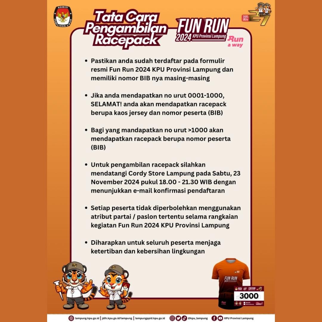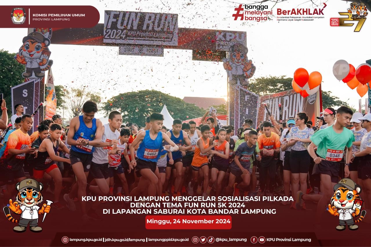 Kegiatan Fun Run menjadi salah satu bentuk sosialisasi KPU Provinsi Lampung terhadap Pilkada pada 27 November 2024. Kegiatan ini dijadikan ajang komunikasi kepada masyarakat Lampung untuk menjadi Pemilih yang bebas, jujur, dan adil sehingga Pilkada 2024 dapat berjalan dengan lancar dan sesuai rencana. Acara ini pula menyajikan hiburan masyarakat.