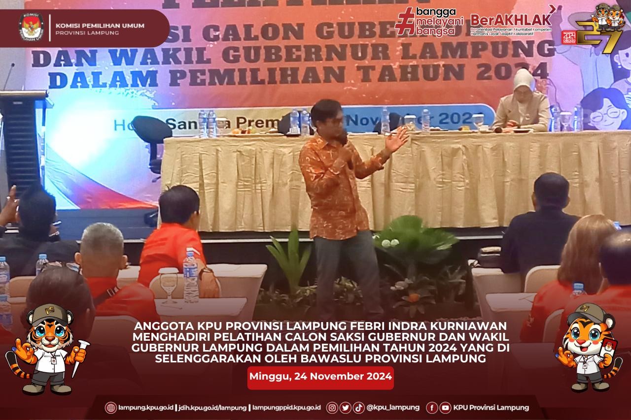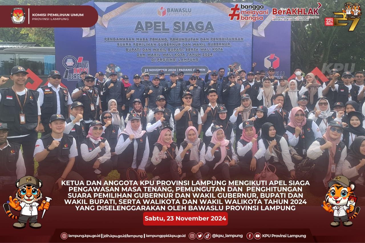 Kegiatan ini dikuti oleh Ketua KPU Provinsi Lampung Erwan Bustami, Anggota KPU Provinsi Lampung Ahmad Zamroni, Dedi Fernando, Hermansyah, Ervhan Jaya, dan Angga Lazuardy, Plt. Sekretaris KPU Provinsi Lampung Arif ma’ruf serta Kabag, Pejabat Fungsional, dan Kasubbag di Lingkungan KPU Provinsi Lampung.