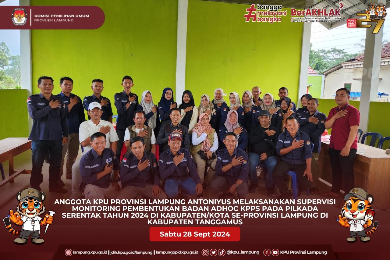 (Sabtu, 28 September 2024) Anggota KPU Provinsi Lampung Antoniyus Melaksanakan Supervisi Monitoring Pembentukan Badan Adhoc KPPS pada Pilkada Serentak Tahun 2024 di Kabupaten/Kota Se-Provinsi Lampung di Kabupaten Tanggamus.