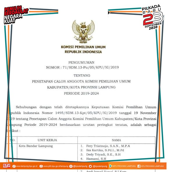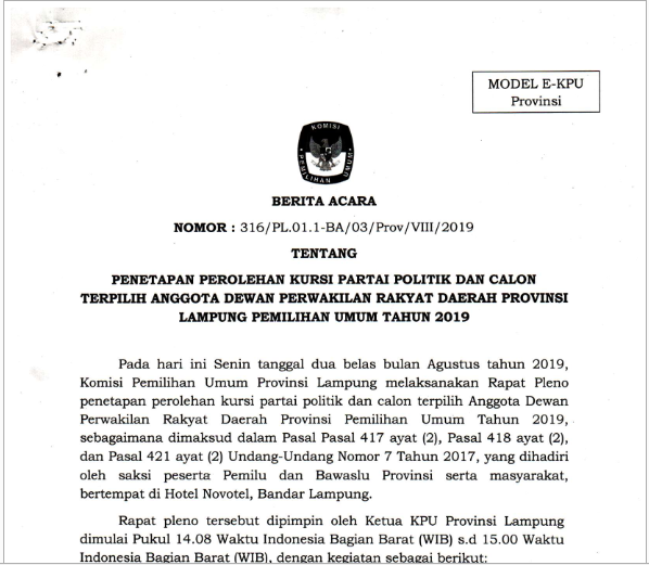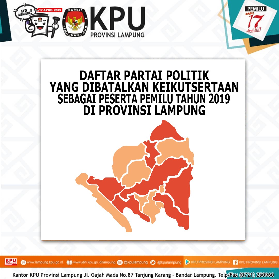 DAFTAR PARTAI POLITIK YANG DIBATALKAN KEIKUTSERTAAN SEBAGAI PESERTA PEMILU TAHUN 2019 DI PROVINSI LAMPUNG