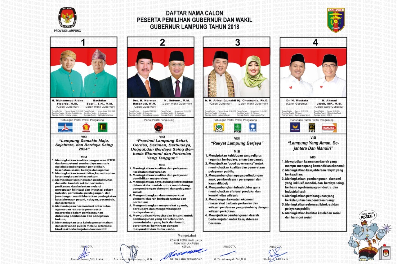 KOMISI PEMILIHAN UMUM PROVINSI LAMPUNG PENGUMUMAN Nomor: 1055/PL.01.1-PU/03/Prov/VIII/2018 TENTANG DAFTAR CALON SEMENTARA (DCS) ANGGOTA DPRD PROVINSI LAMPUNG PADA PEMILIHAN UMUM TAHUN 2019 Dasar: 1. Undang – undang No 7 Tahun 2017 tentang Pemilihan Umum; 2. Peraturan Komisi Pemilihan Umum No 7 Tahun 2017 Tentang Tahapan, Program, dan Jadwal Penyelenggaraan Pemilihan Umum tahun 2019 Sebagaimana diubah dengan peraturan Komisi Pemillihan Umum No 5 Tahun 2018; 3. Peraturan Komisi Pemilihan Umum No 20 Tahun 2018 Tentang Pencalonan Anggota Dewan Perwakilan Rakyat, Dewan Perwakilan Rakyat Daerah Provinsi; 4. Keputusan Komisi Pemilihan Umum Provinsi Lampung Nomor: 428 /HK.03.1-Kpt/Prov/VIII/2018 tanggal 12 Agustus 2018 tentang Penentapan Daftar Calon Sementara (DCS) Anggota Dewan Perwakilan Rakyat Provinsi Lampung Pada Pemilihan Umum Tahun 2019 Dengan ini disampaikan Daftar Calon Sementara (DCS) Anggota Dewan Perwakilan Rakyat Provinsi Lampung Pada Pemilihan Umum Tahun 2019 yang telah memenuhi: 1. Jumlah Calon Anggota DPRD Provinsi Lampung Sebesar 937 orang dengan Jumlah Laki-laki 577 Jumlah Perempuan 360 dengan Persentase Keterwakilan Perempuan Sebesar 38% (Tiga Puluh Delapan Persen); 2. Pengajuan Telah Memenuhi Ketentuan Pakta Integritas. Berdasarkan ketentuan Pasal 23 Ayat (1) huruf a Peraturan Komisi Pemilihan Umum Nomor 20 Tahun 2018 tentang Pencalonan Anggota Dewan Perwakilan Rakyat, Dewan Perwakilan Rakyat Daerah Provinsi, dan Dewan Perwakilan Rakyat Daerah Kabupaten/Kota, masyarakat dapat mengajukan tanggapan terkait persyaratan bakal calon dengan melampirkan identitas diri lengkap kepada Komisi Pemilihan Umum Provinsi Lampung melalui email kpudprovlampung@gmail.com atau surat tertulis paling lambat 10 (sepuluh) hari ssejak pengumuman DCS ini diumumkan. Informasi lebih lengkap dapat dilihat di website KPU Provinsi Lampung www.lampung.kpu.go.id atau datang langsung ke kantor KPU Provinsi Lampung Jalan Gajah Mada Nomor 87 Tanjung Karang. Bandar Lampung, 12 Agustus 2018 Ketua Komisi Pemilihan Umum Provinsi Lampung dto NANANG TRENGGONO 1. Scan Pengumuman DAFTAR CALON SEMENTARA (DCS) ANGGOTA DPRD PROVINSILAMPUNG PADA PEMILIHAN UMUM TAHUN 2019 Klik Disini 2. Scan DCS Dapil 1 Lampung Pemilu 2019 Klik Disini 3. Scan DCS Dapil 2 Lampung Pemilu 2019 Klik Disini 4. Scan DCS Dapil 3 Lampung Pemilu 2019 Klik Disini 5. Scan DCS Dapil 4 Lampung Pemilu 2019 Klik Disini 6. Scan DCS Dapil 5 Lampung Pemilu 2019 Klik Disini 7. Scan DCS Dapil 6 Lampung Pemilu 2019 Klik Disini 8. Scan DCS Dapil 7 Lampung Pemilu 2019 Klik Disini 9. Scan DCS Dapil 8 Lampung Pemilu 2019 Klik Disini