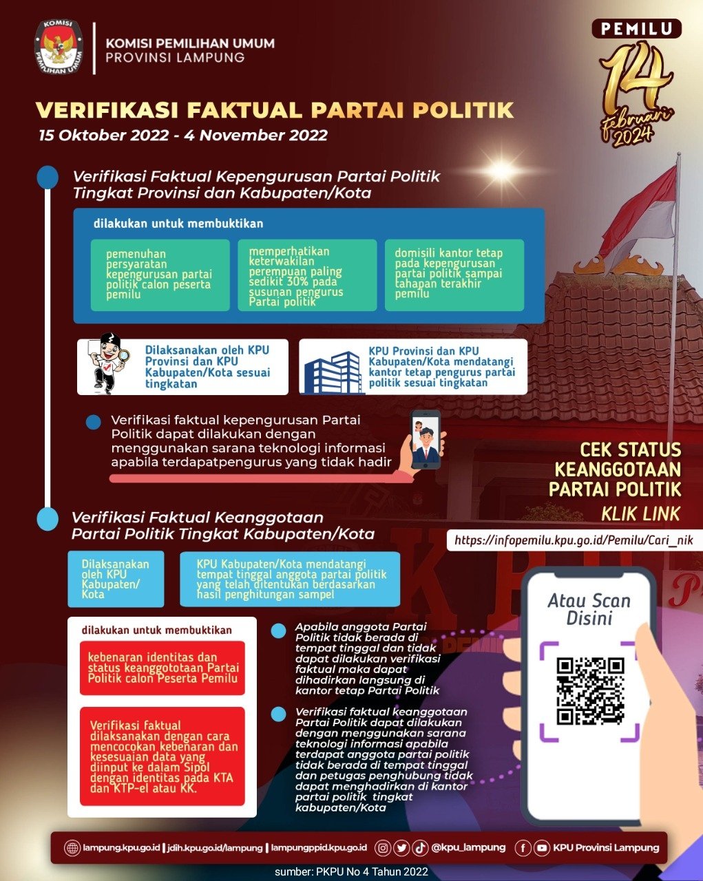 Peraturan KPU Nomor 4 Tahun 2022 tentang Pendaftaran, Verifikasi, dan Penetapan Partai Politik Peserta Pemilihan Umum Anggota Dewan Perwakilan Rakyat dan Dewan Perwakilan Rakyat Daerah (Disertai JADWAL DAN TAHAPAN pada Lampiran I) dapat di download di sini KLIK DISINI