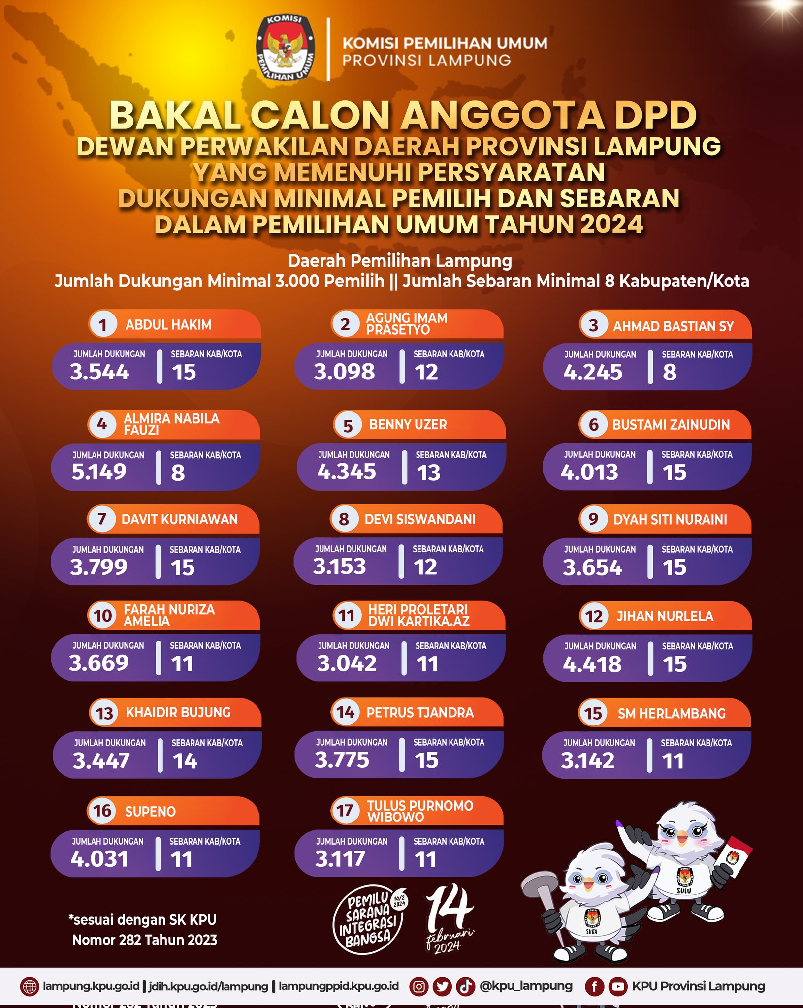 5. Bakal Calon Anggota DPD yang telah memenuhi persyaratan minimal dukungan dan sebaran