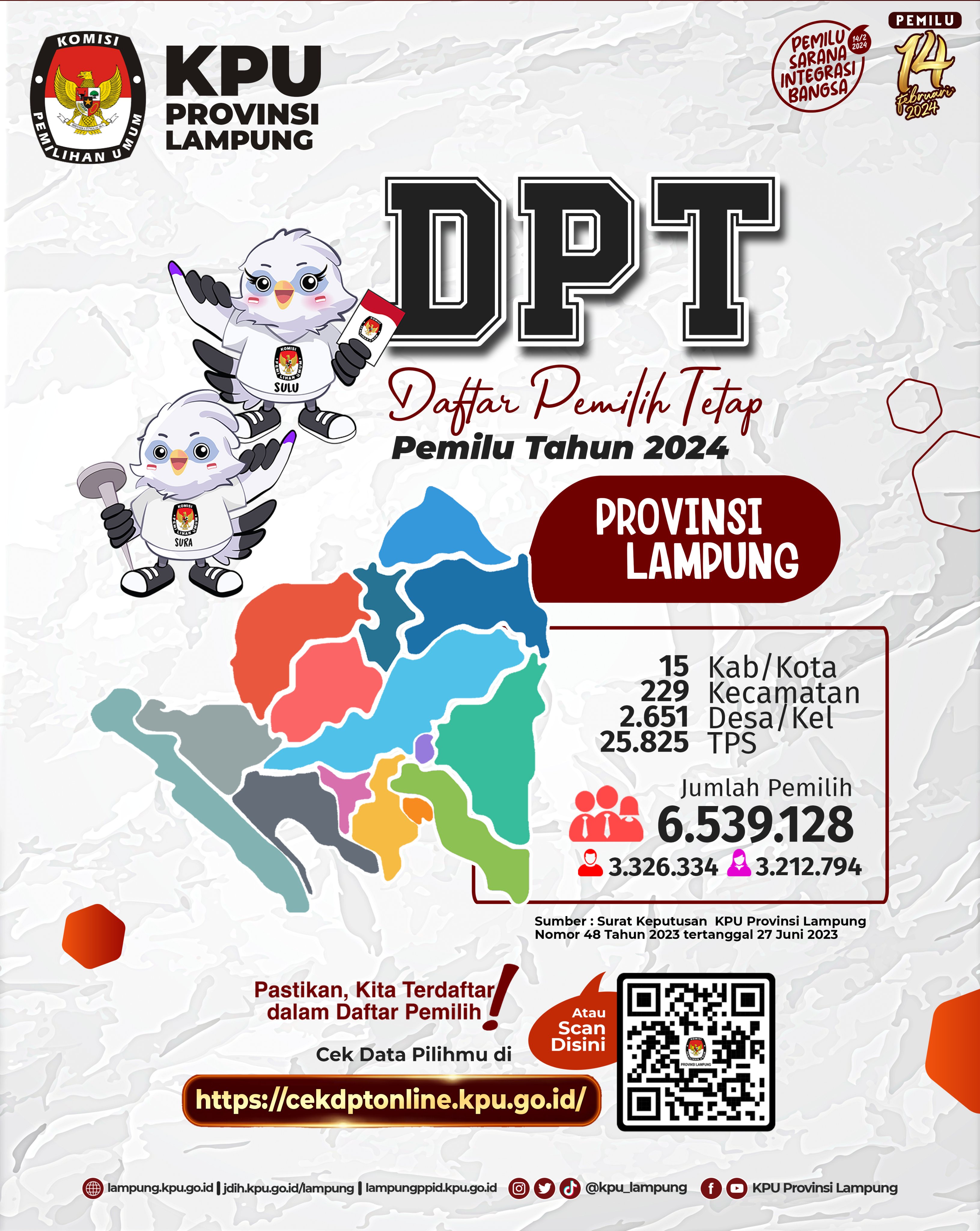 2. DPT Pemilu 2024 Provinsi Lampung KEPUTUSAN KOMISI PEMILIHAN UMUM PROVINSI LAMPUNG NOMOR 48 TAHUN 2023 TENTANG PENETAPAN REKAPITULASI DAFTAR PEMILIH (DPT) PROVINSI LAMPUNG DALAM PENYELENGGARAAN PEMILIHAN UMUM TAHUN 2024