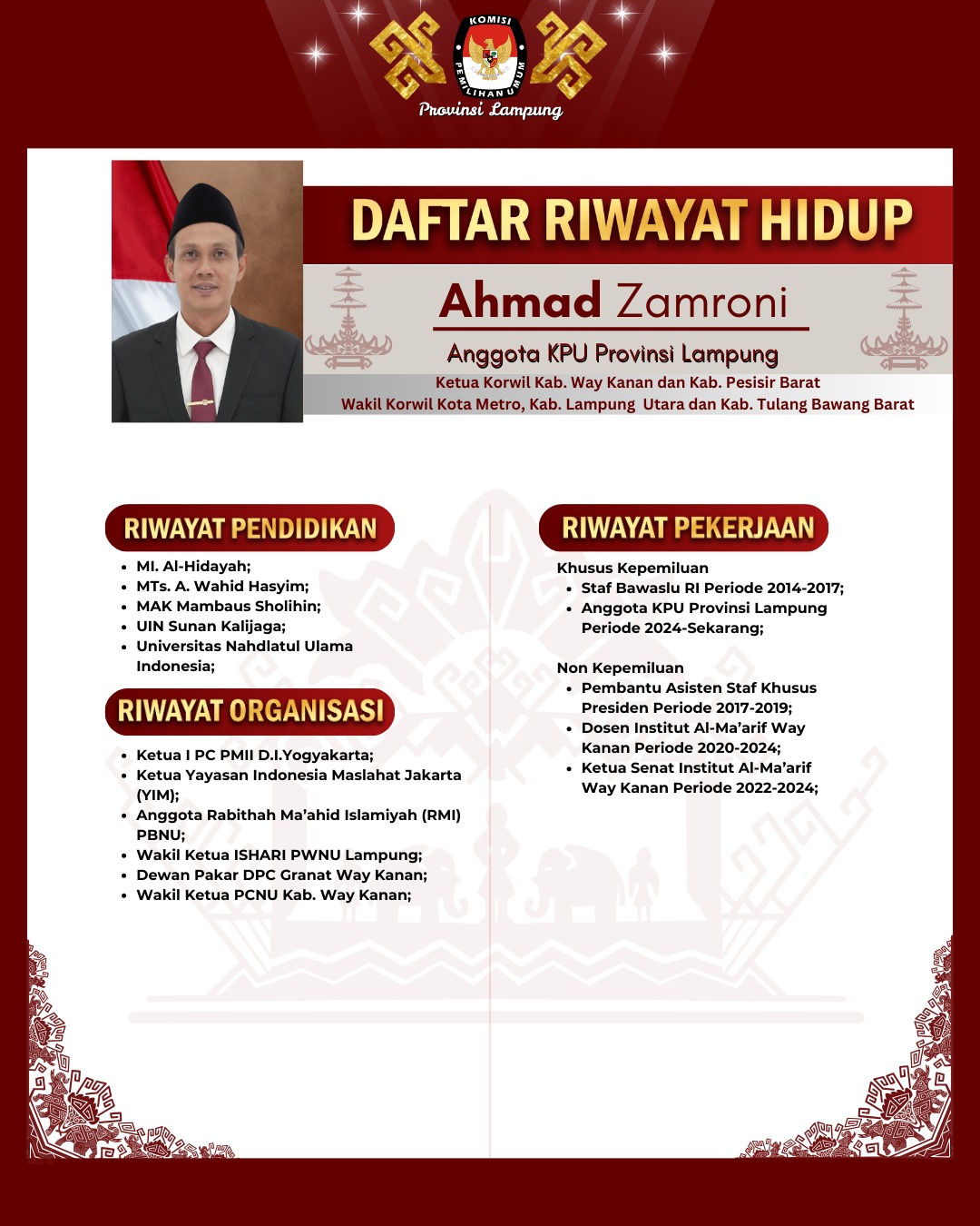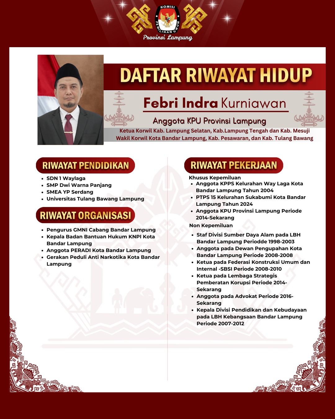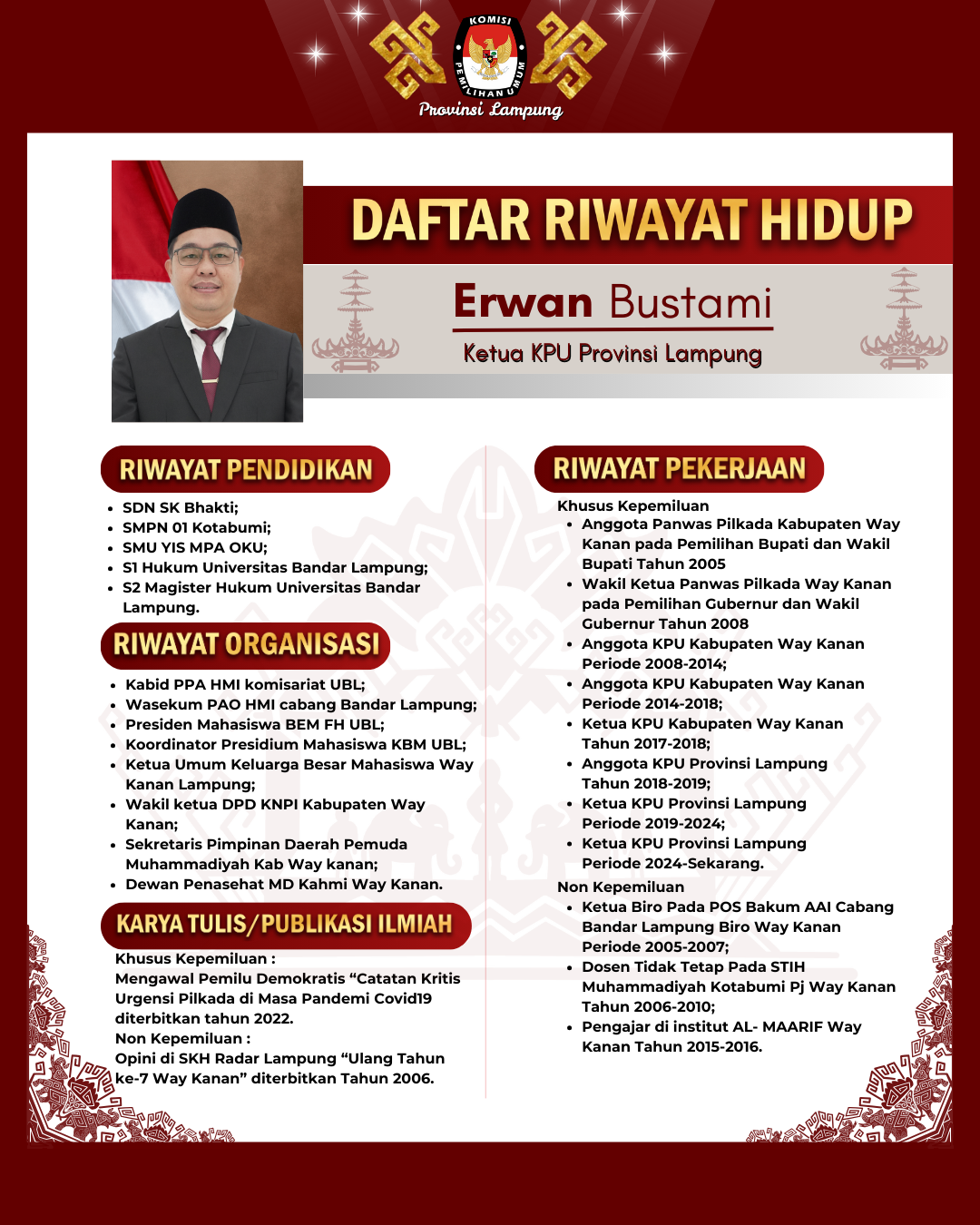 1. Erwan Bustami (Ketua KPU Provinsi Lampung, Ketua Divisi Keuangan, Umum dan Rumah Tangga) (Profil Lengkap Klik Disini)