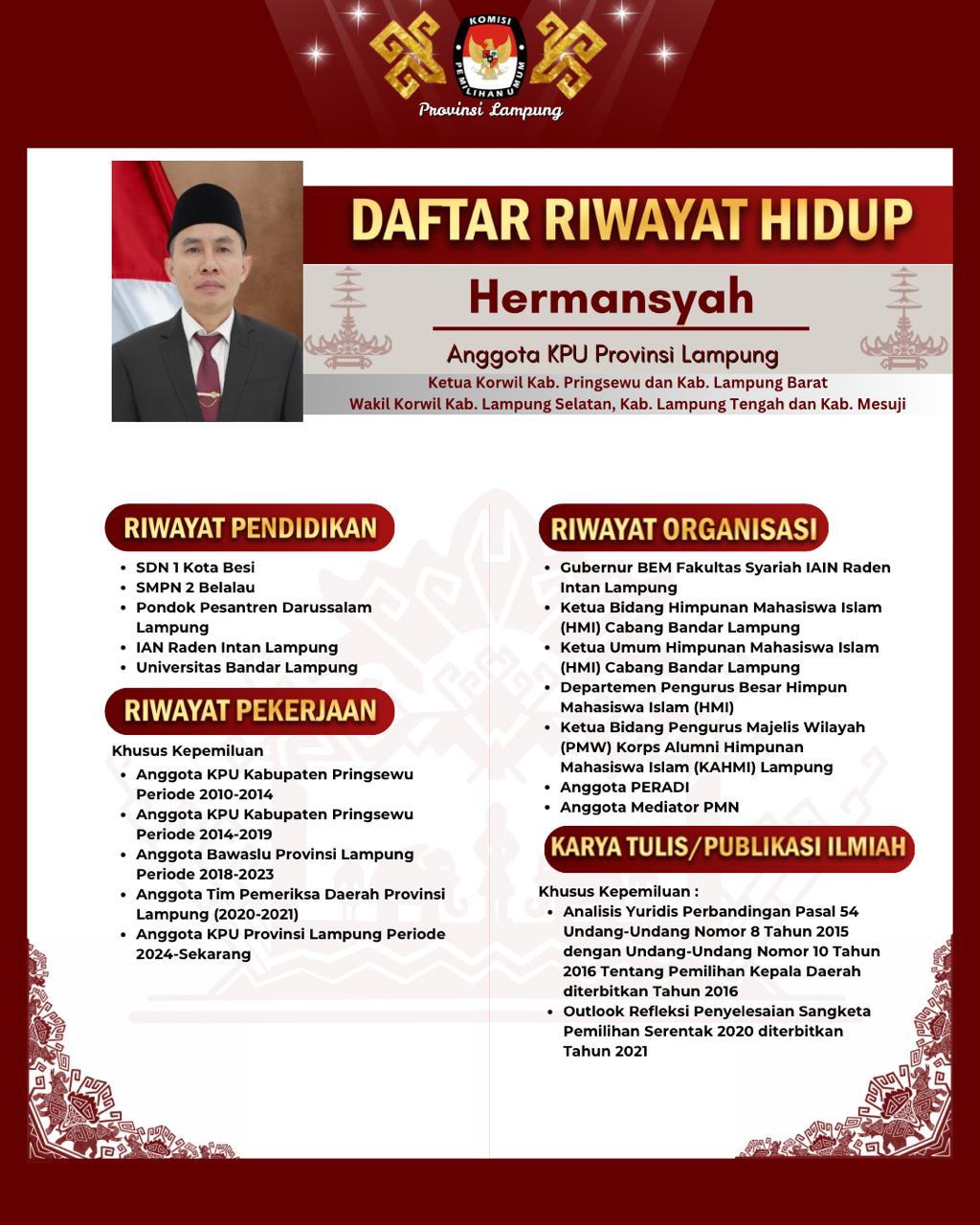 7. Hermansyah (Anggota KPU, Ketua Divisi Hukum dan Pengawasan) (Profil Lengkap Klik Disini)